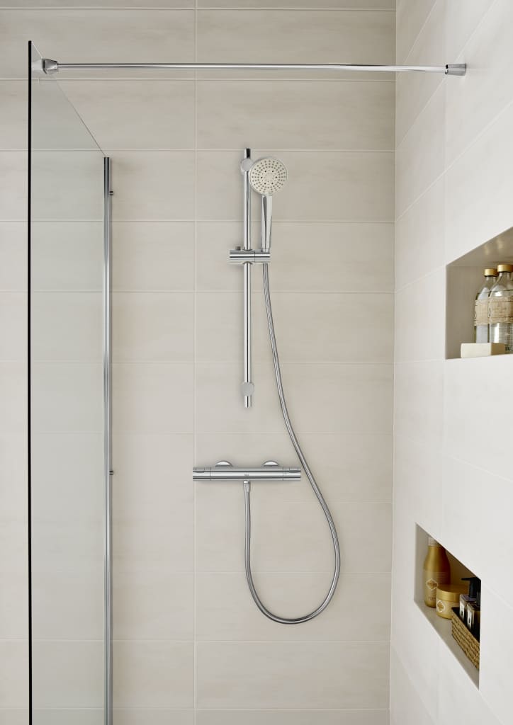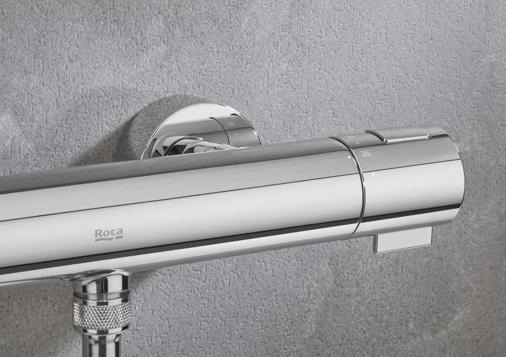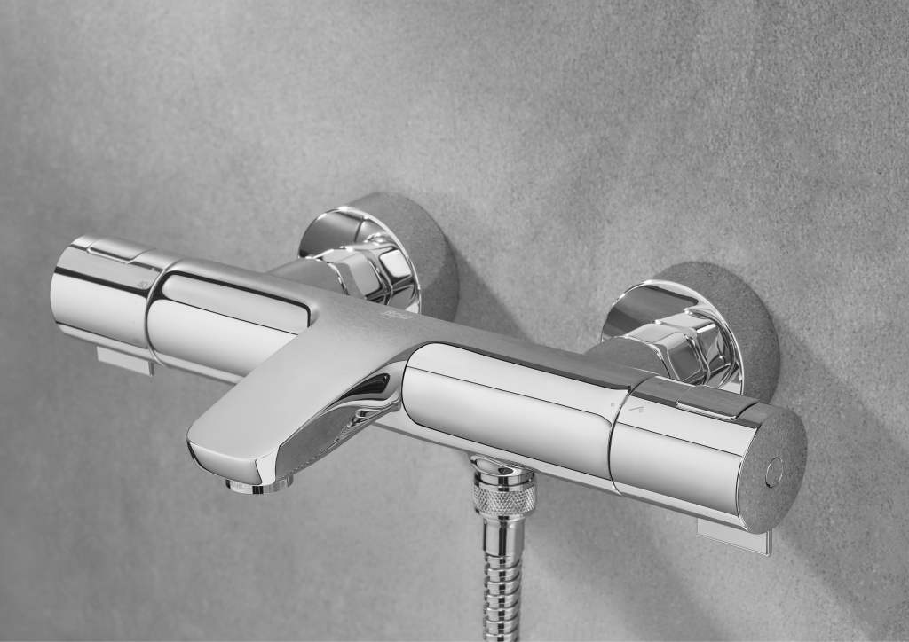 Bateria termostatică pentru cadă din gama T-500 oferă o experiență de utilizare sigură și confortabilă, menținând temperatura apei constantă pe toată durata băii. Designul ergonomic include butoane de control intuitive, facilitând reglarea debitului și a temperaturii. Siguranța este prioritară, bateria fiind dotată cu tehnologia SafeTouch, care previne supraîncălzirea corpului cromat, și un limitator de siguranță la 38 °C pentru a evita opărirea accidentală. Cartușul termostatic de înaltă precizie reacționează instantaneu la fluctuațiile de presiune din rețea, asigurând un flux stabil.