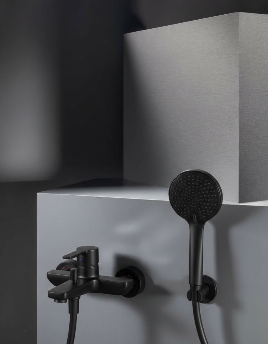 Bateria monocomandă pentru cadă din colecția Targa se distinge printr-un design contemporan, unde liniile curbe și suprafețele plane se îmbină pentru a crea un aspect vizual echilibrat. Finisajul negru mat adaugă o notă de modernitate și rafinament, fiind în același timp rezistent la amprente și pete de apă. Corpul din alamă sanitară și cartușul ceramic de înaltă precizie asigură o durabilitate remarcabilă și o reglare fluidă a temperaturii. Comutatorul automat permite redirecționarea rapidă a fluxului de apă către sistemul de duș, revenind la poziția inițială după oprirea robinetului.