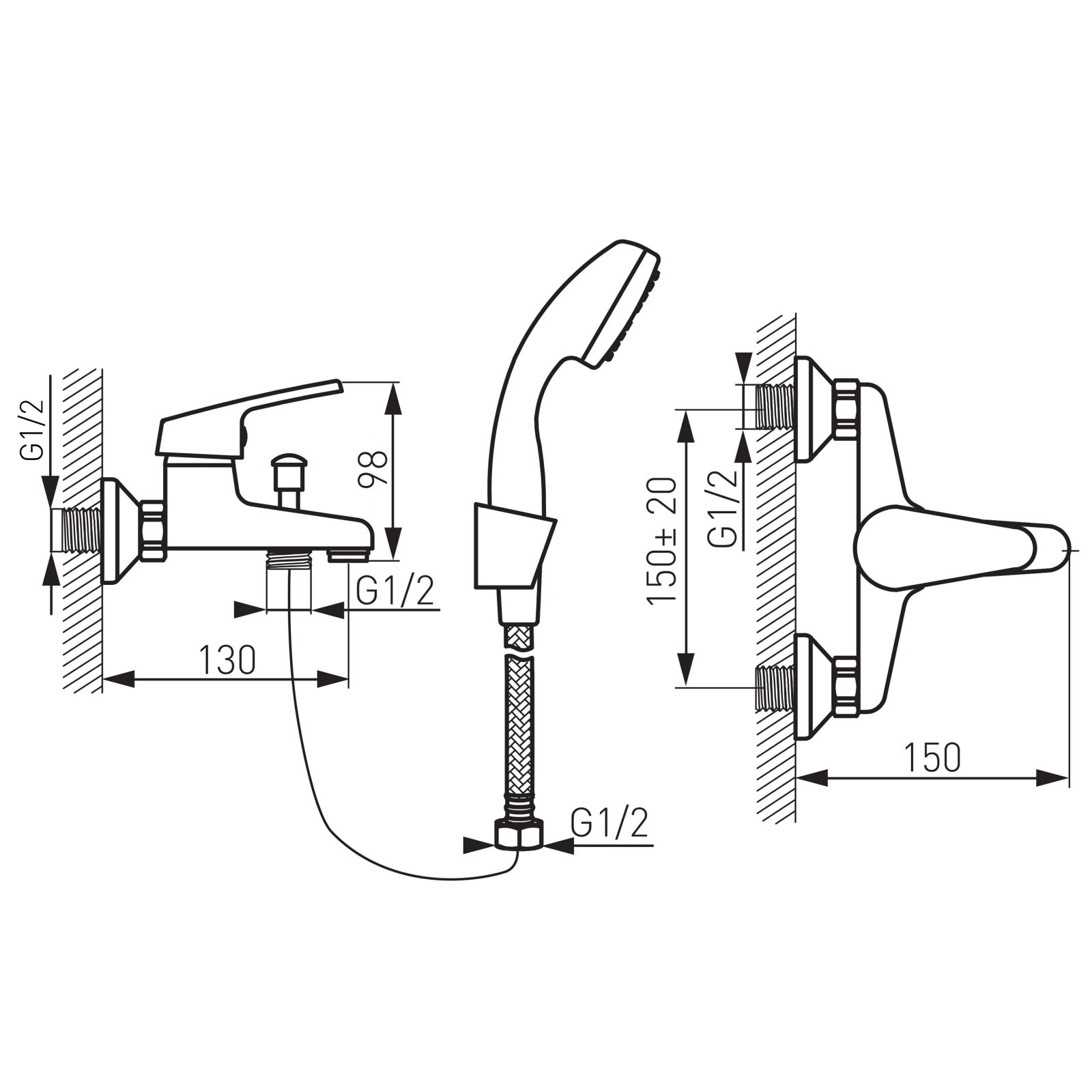 Compatibilitate și condiții de montare: proiectat pentru montaj pe perete; distanța între axe 150-20 mm; conexiune standard G 1/2. Recomandări de îngrijire și siguranță: curățați cu apă și detergenți neutri; folosiți o cârpă moale pentru a evita deteriorarea luciului; verificați etanșeitatea sistemului după montaj.