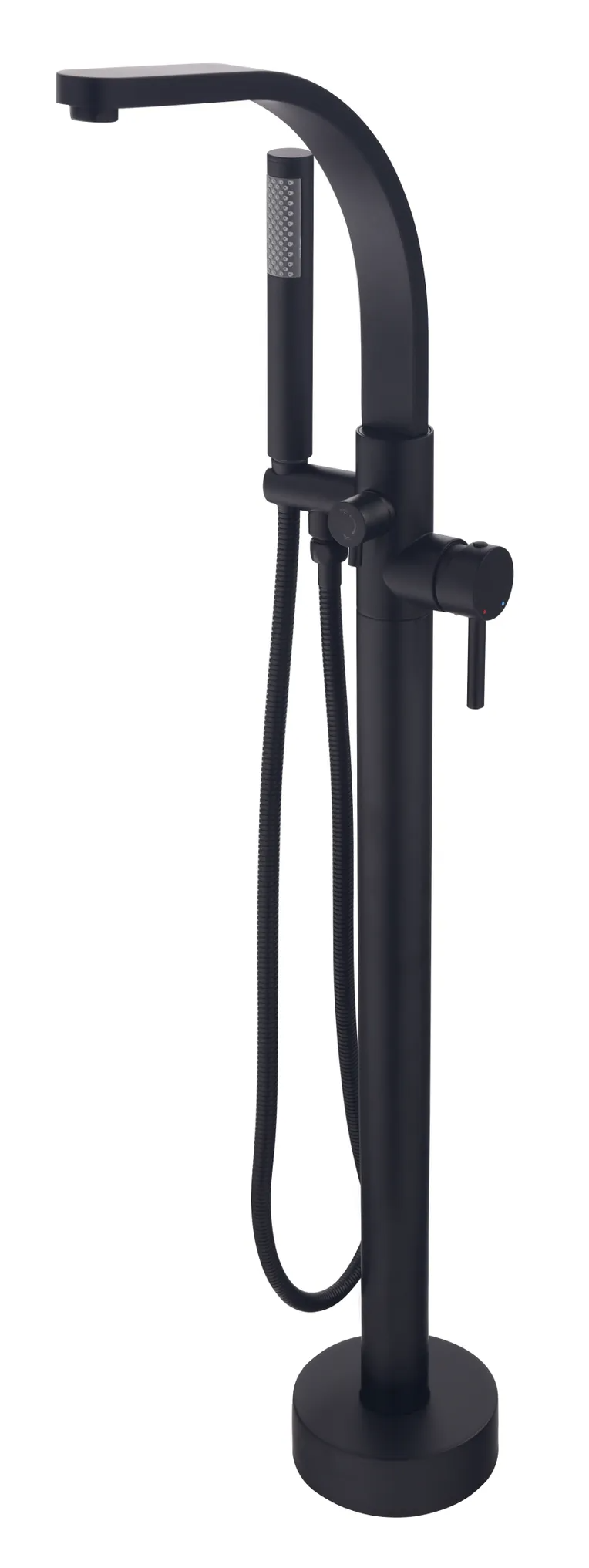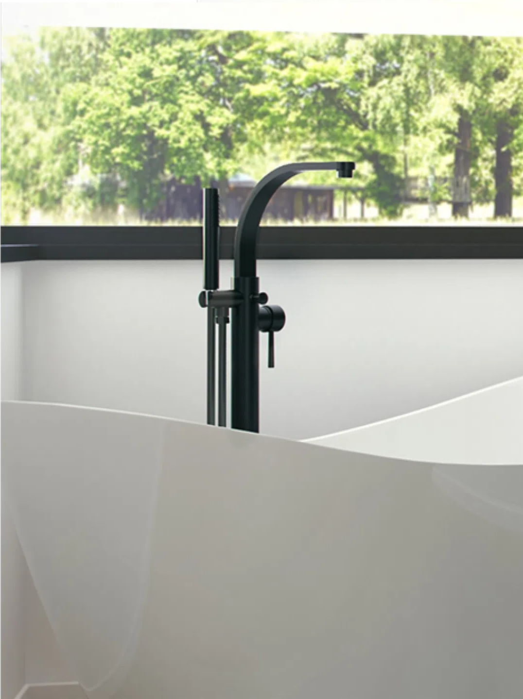 Bateria de cadă freestanding din colecția Decco II se remarcă prin designul său arhitectural cu linii drepte și unghiuri bine definite, fiind ideală pentru interioarele moderne. Înălțimea de 105,5 cm asigură o poziționare optimă față de marginea căzii, oferind un confort sporit în utilizare. Sistemul monocomandă permite reglarea precisă a fluxului de apă, iar divertorul discret face trecerea rapidă între pipa fixă și setul de duș. Finisajul negru mat, aplicat prin tehnologia de electroplacare, conferă suprafeței o rezistență superioară la coroziune și o textură catifelată, eliminând reflexiile nedorite.