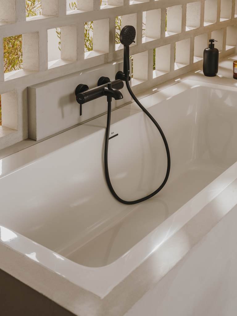 Bateria de duș monocomandă din colecția Roca Ona în finisaj negru mat combină estetica inspirată de formele naturale cu o funcționalitate superioară, fiind ideală pentru amenajări moderne. Suprafața mată, obținută prin tehnologii avansate de acoperire, oferă o rezistență sporită la zgârieturi și amprente, menținând aspectul sobru al băii. Designul subțire și maneta cilindrică permit o operare ergonomică, asigurând reglarea fluidă a temperaturii și a presiunii apei. Cartușul ceramic de ultimă generație garantează o etanșeitate perfectă și o utilizare silențioasă, transformând ritualul zilnic într-o experiență confortabilă.