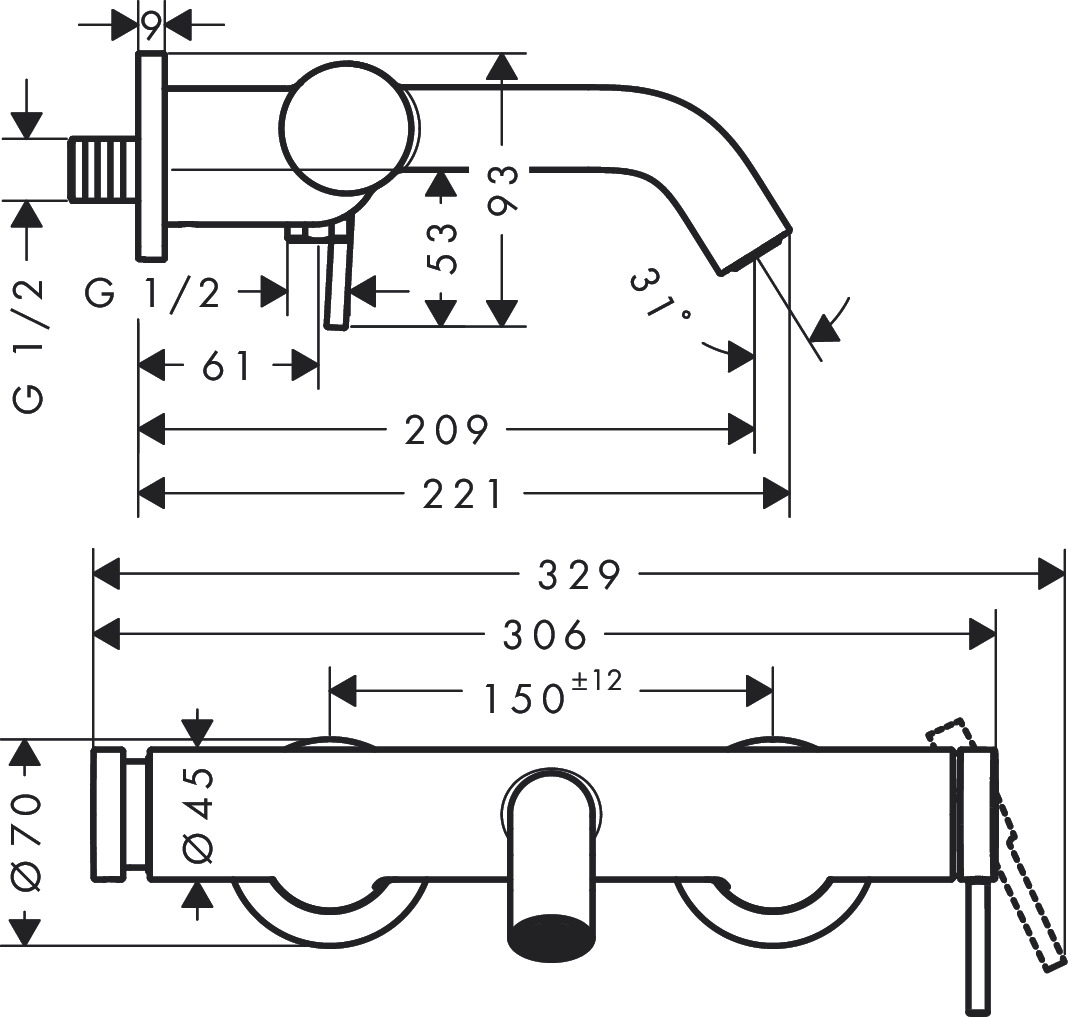 Compatibilitate și condiții de montare: proiectat pentru montaj pe perete; distanța între axe 150-12 mm; conexiune standard G 1/2. Recomandări de îngrijire și siguranță: curățați cu o cârpă moale și soluții neutre; evitați agenții de curățare abrazivi; verificați etanșeitatea conexiunilor după finalizarea instalării.