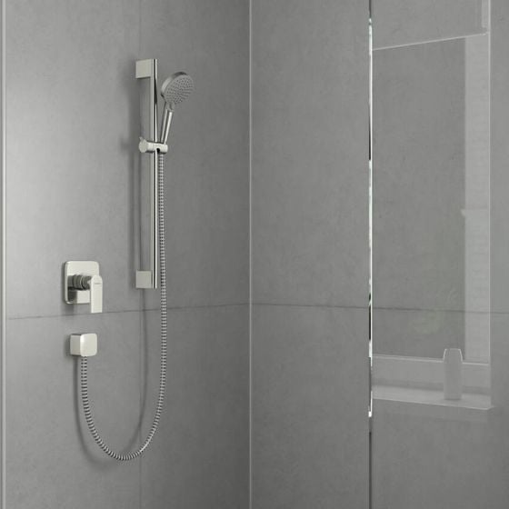 Bateria de duș Hansgrohe Vernis Shape, incorporată, aduce un plus de eleganță și funcționalitate băii tale. Cu un design modern, linii clare și finisaj de înaltă calitate, această baterie oferă un control precis al temperaturii și debitului apei, pentru o experiență de duș confortabilă și relaxantă. Materialele durabile și tehnologia avansată Hansgrohe asigură o utilizare îndelungată, iar instalarea simplă face ca această baterie să fie alegerea ideală pentru băi moderne și sofisticate.