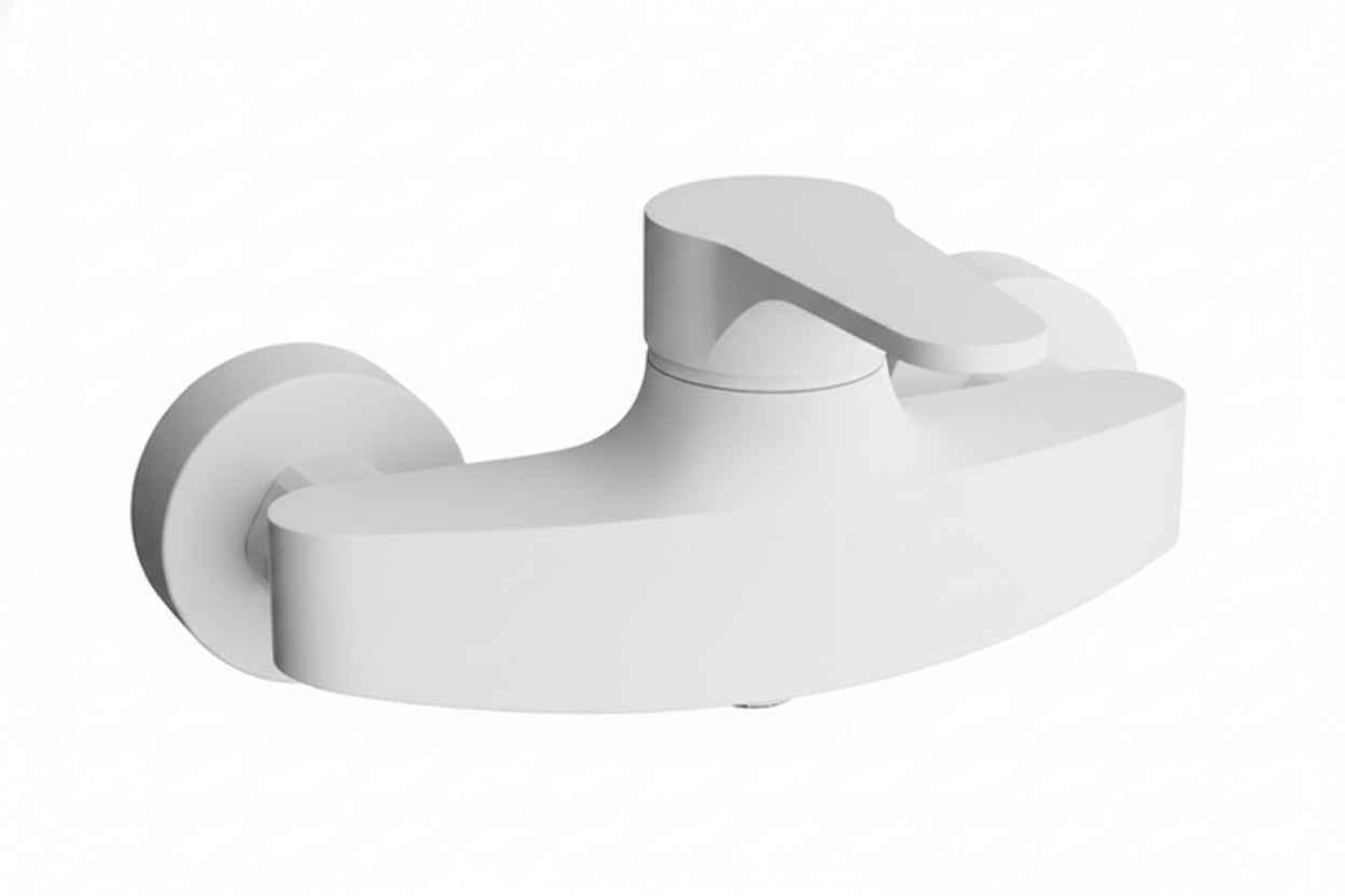 Bateria de duș igienic cu montaj aparent din colecția Omega reprezintă o soluție practică și estetică, remarcându-se prin finisajul modern alb mat și designul compact. Acest model este conceput cu o distanță între axe de 10 cm, fiind ideal pentru spațiile sanitare unde se dorește o instalare rapidă pe conexiunile de apă existente, fără necesitatea unor lucrări complexe de încastrare. Sistemul monocomandă permite o reglare fluidă a temperaturii și a debitului de apă, în timp ce suprafața albă mată oferă un aspect curat, minimalist și o rezistență sporită la petele de apă și amprente.