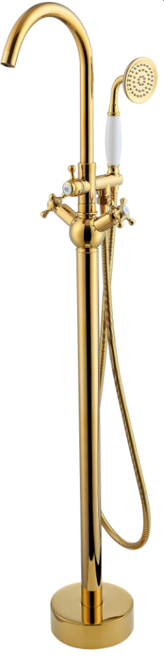 Bateria de cadă freestanding din colecția Retro emană un farmec clasic irezistibil, fiind soluția ideală pentru băile amenajate în stil nobiliar sau vintage. Înălțimea de 1150 mm și pipa curbată elegant asigură o utilizare ergonomică alături de căzi de sine stătătoare cu design tradițional. Cele două manere separate permit un control precis al fluxului de apă caldă și rece, oferind o experiență autentică. Finisajul auriu lucios, aplicat prin tehnologii de galvanizare de înaltă calitate, conferă produsului o strălucire sofisticată și o protecție durabilă împotriva coroziunii, transformând bateria într-o adevărată bijuterie a interiorului.