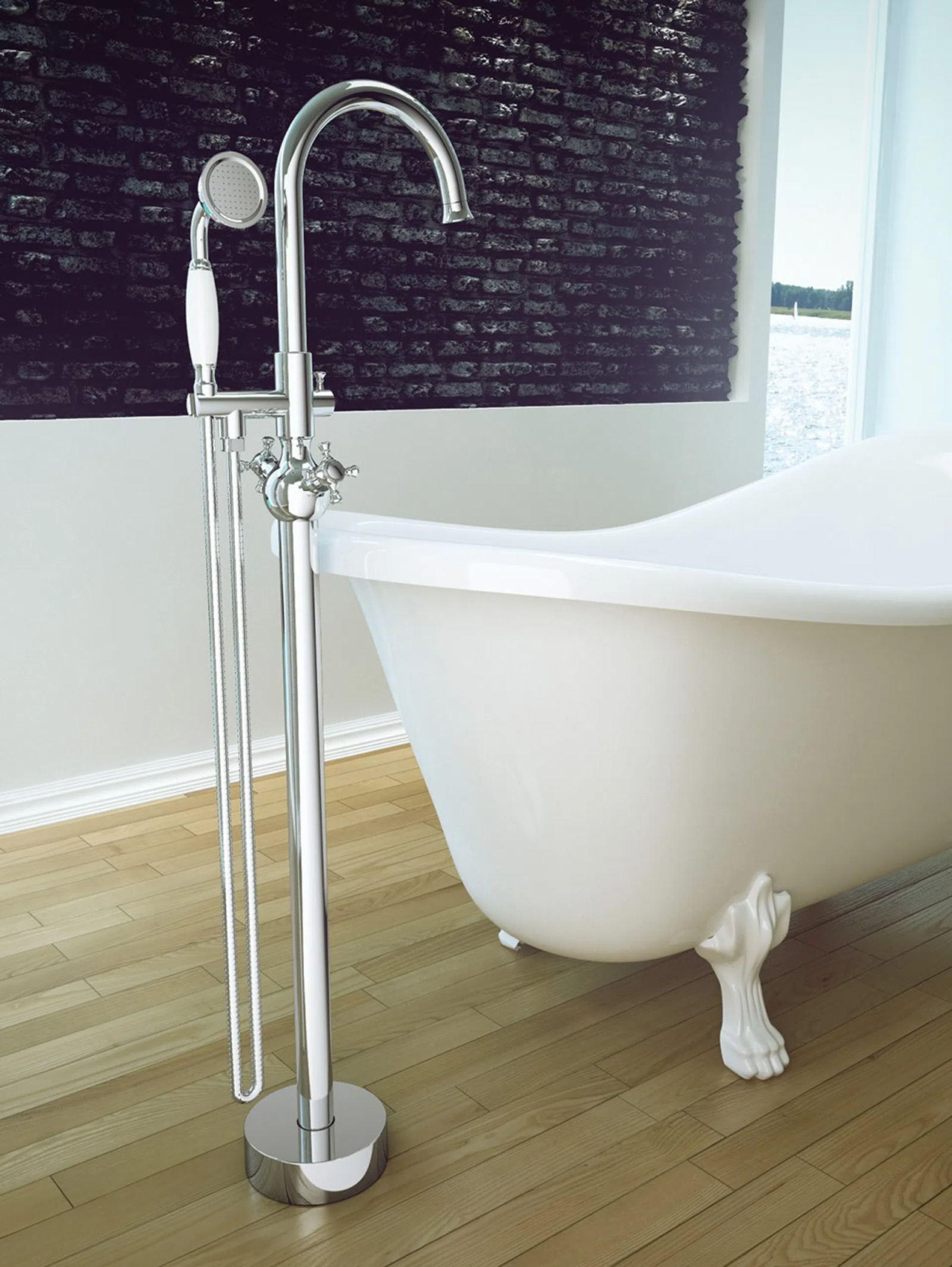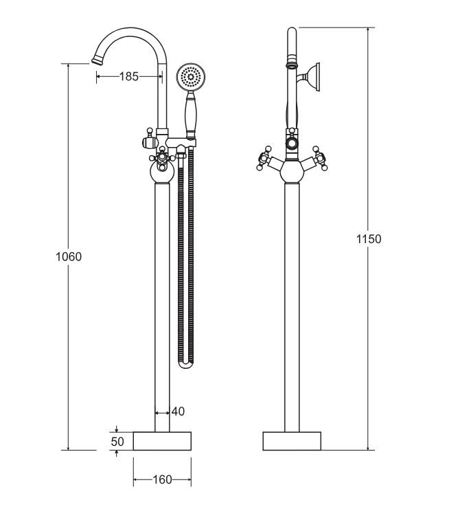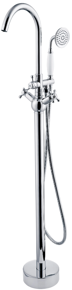 Bateria de cadă freestanding din colecția Retro I evocă farmecul stilului clasic, fiind o piesă sofisticată pentru băile cu design nostalgic sau eclectic. Cu o înălțime de 1150 mm, acest model este conceput special pentru a fi amplasat lângă căzile de tip insulă, oferind o prezență vizuală impunătoare și distinsă. Sistemul cu dublă comandă și pipa arcuită permit un control precis asupra fluxului de apă, în timp ce detaliile ornamentale subliniază atenția la finisaje. Suprafața cromată de înaltă calitate protejează corpul din alamă sanitară împotriva coroziunii, menținând strălucirea oglindă a produsului pe o durată lungă de timp.