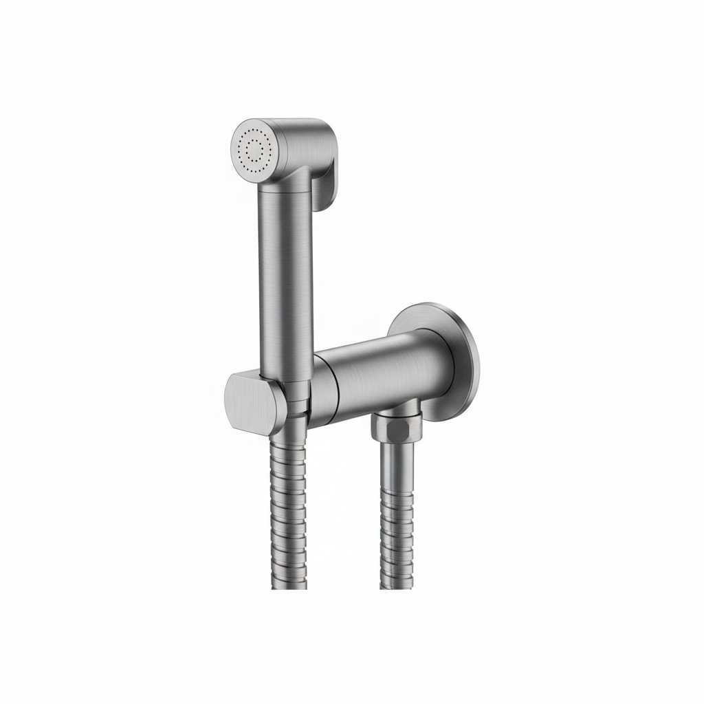 Bateria de duș igienic încastrată din colecția Suvi, în finisaj Visual Steel, reprezintă o soluție modernă și rafinată pentru igiena personală, optimizând spațiul prin designul său compact. Acest model este dotat cu un cartuș progresiv inovator, care permite reglarea temperaturii prin rotirea simplă a mânerului, oferind un control precis și o siguranță sporită. Finisajul Visual Steel conferă un aspect de oțel inoxidabil periat, fiind extrem de rezistent la amprente și zgârieturi, oferind totodată o estetică industrial-elegantă. Para de duș cu funcție shut-off și furtunul flexibil asigură o manevrabilitate excelentă și un control instantaneu al jetului de apă.
