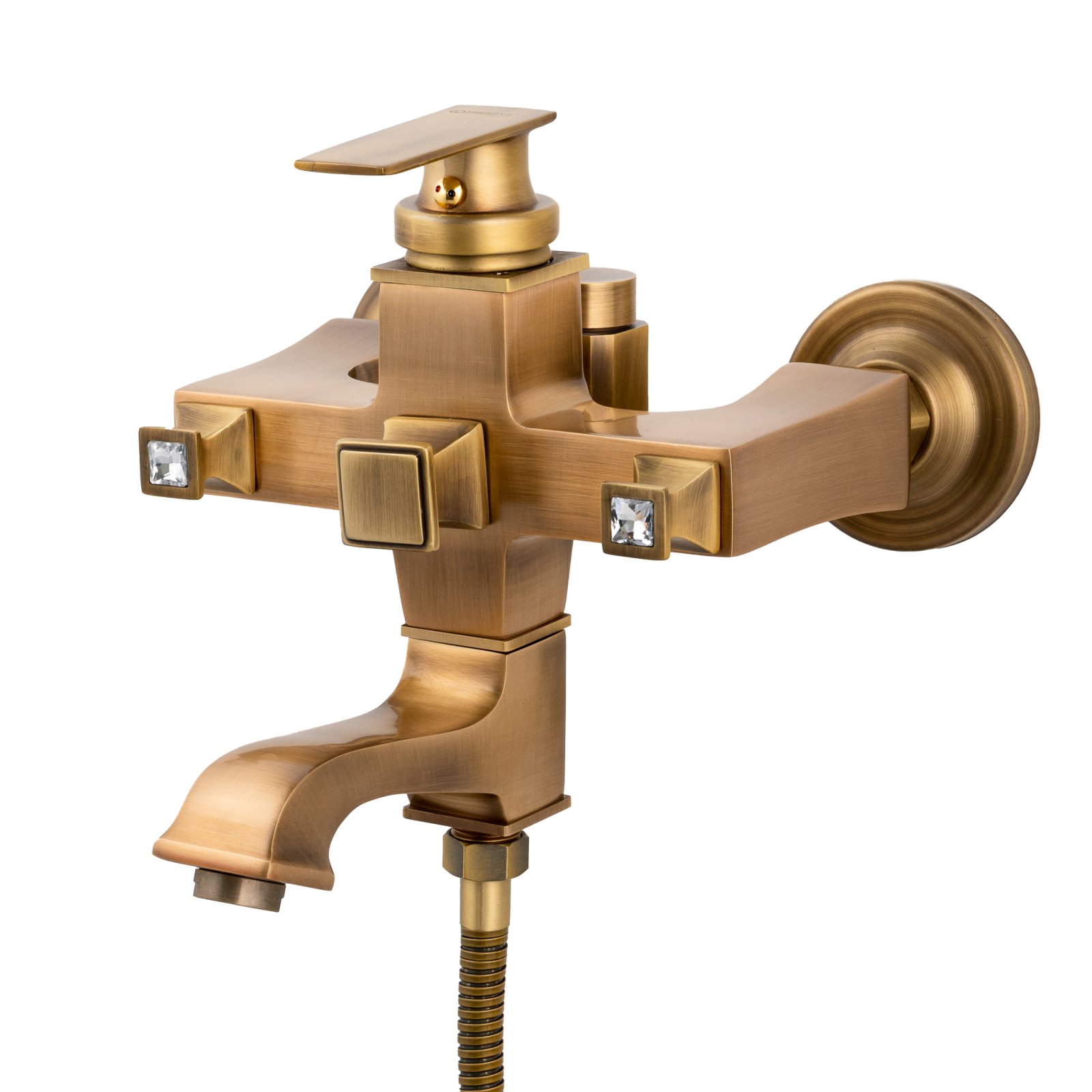 Bateria pentru cadă TIARA, cu set de duș inclus și finisaj bronz șlefuit, adaugă un aer elegant și clasic băii tale. Este echipată cu comutator pentru cadă și duș, asigurând un flux constant de apă și confort în utilizare. Finisajul bronz șlefuit conferă durabilitate și un aspect sofisticat, fiind ideală pentru băi cu stil tradițional sau vintage.