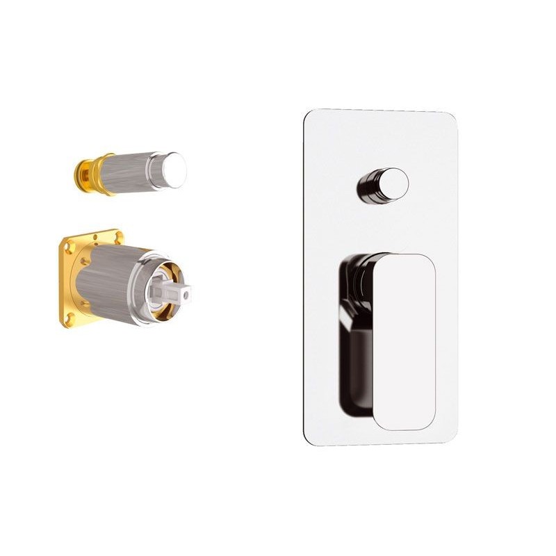 Bateria de cadă și duș încastrată din colecția Tiara îmbină armonios liniile curbe cu suprafețele plane, oferind un design contemporan și ergonomic. Sistemul monocomandă, dotat cu un cartuș ceramic de înaltă calitate, asigură o reglare lină și precisă a temperaturii și a debitului de apă. Montajul ascuns eliberează spațiul pe perete, lăsând la vedere doar placa metalică elegantă și mânerul ergonomic. Divertorul integrat permite comutarea rapidă între cele 2 funcții, asigurând o utilizare confortabilă și eficientă în utilizarea zilnică.