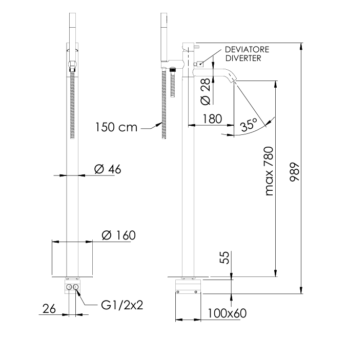 Bateria de cadă freestanding din colecția Tokyo îmbină rigoarea designului minimalist cu influențe moderne, fiind ideală pentru amenajările contemporane. Înălțimea de 760 mm este optimizată pentru o instalare elegantă lângă căzile de tip insulă, asigurând un acces facil și o utilizare confortabilă. Sistemul monocomandă permite reglarea lină a debitului și a temperaturii apei, în timp ce divertorul integrat facilitează trecerea rapidă către para de duș. Finisajul negru mat, aplicat prin tehnologii avansate, conferă suprafeței o rezistență sporită la petele de apă și zgârieturi, menținând un aspect sobru și rafinat.