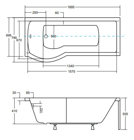 Cada Besco INSPIRO 170x70 cu suport inclus, stinga