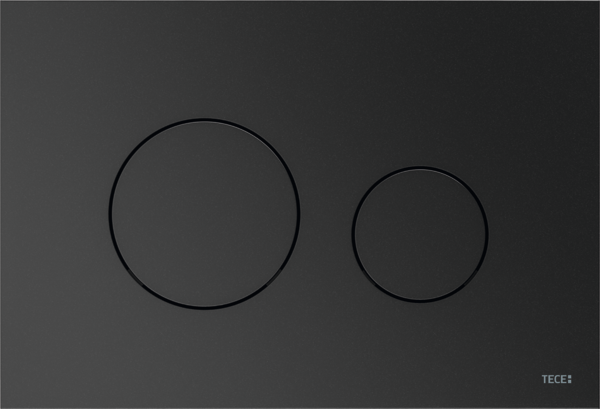 Clapeta de acționare TECEloop cu finisaj negru mat reprezintă o alegere sofisticată pentru băile moderne, punând accent pe minimalism și eleganță. Designul său plat, caracterizat prin butoane circulare integrate într-o ramă dreptunghiulară, oferă un contrast vizual puternic și o estetică contemporană. Suprafața mată este tratată pentru a fi rezistentă la amprente, asigurând un aspect impecabil chiar și în condiții de utilizare intensă. Sistemul cu dublă acționare permite controlul precis al fluxului de apă, oferind utilizatorului opțiunea de a economisi resurse prin selectarea volumului de spălare adecvat.