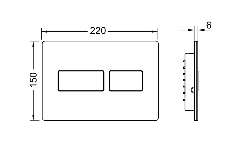 Compatibilitate și condiții de montare: compatibilă cu toate rezervoarele TECE; permite montajul la nivelul peretelui cu ajutorul unei rame specifice de instalare; dimensiuni 220x150x6 mm.