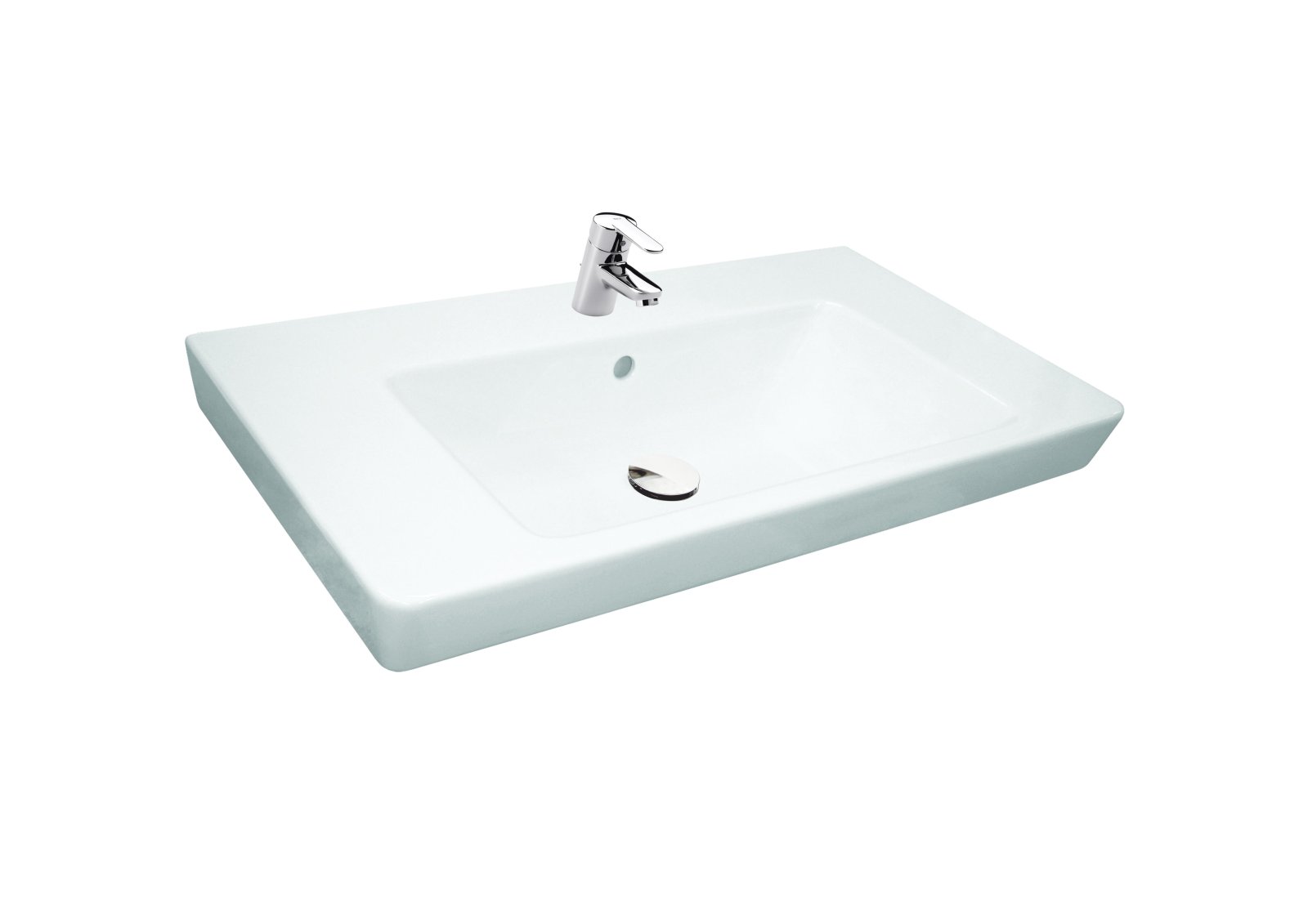 Lavoarul suspendat și pentru mobilier ROCA Caserta este proiectat pentru montaj pe perete, pe mobilier sau cu picior, oferind o soluție versatilă pentru băi de dimensiuni medii și mari. Forma dreptunghiulară și dimensiunile 800x450x170 mm asigură o suprafață generoasă și confort la utilizare. Fabricat din ceramică sanitară albă cu finisaj lucios, produsul este ușor de întreținut și curățat. Găurile centrale pentru baterie și preaplinul integrat permit o instalare standard.