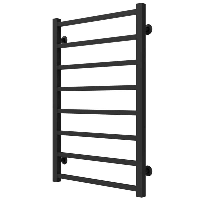 Radiator pentru baie din oțel inoxidabil (Inox), dimensiuni 500x800 mm, finisaj negru mat. Se montează pe perete şi este destinat încălzirii spațiului şi uscării prosoapelor. Funcționează pe agent termic (apă).