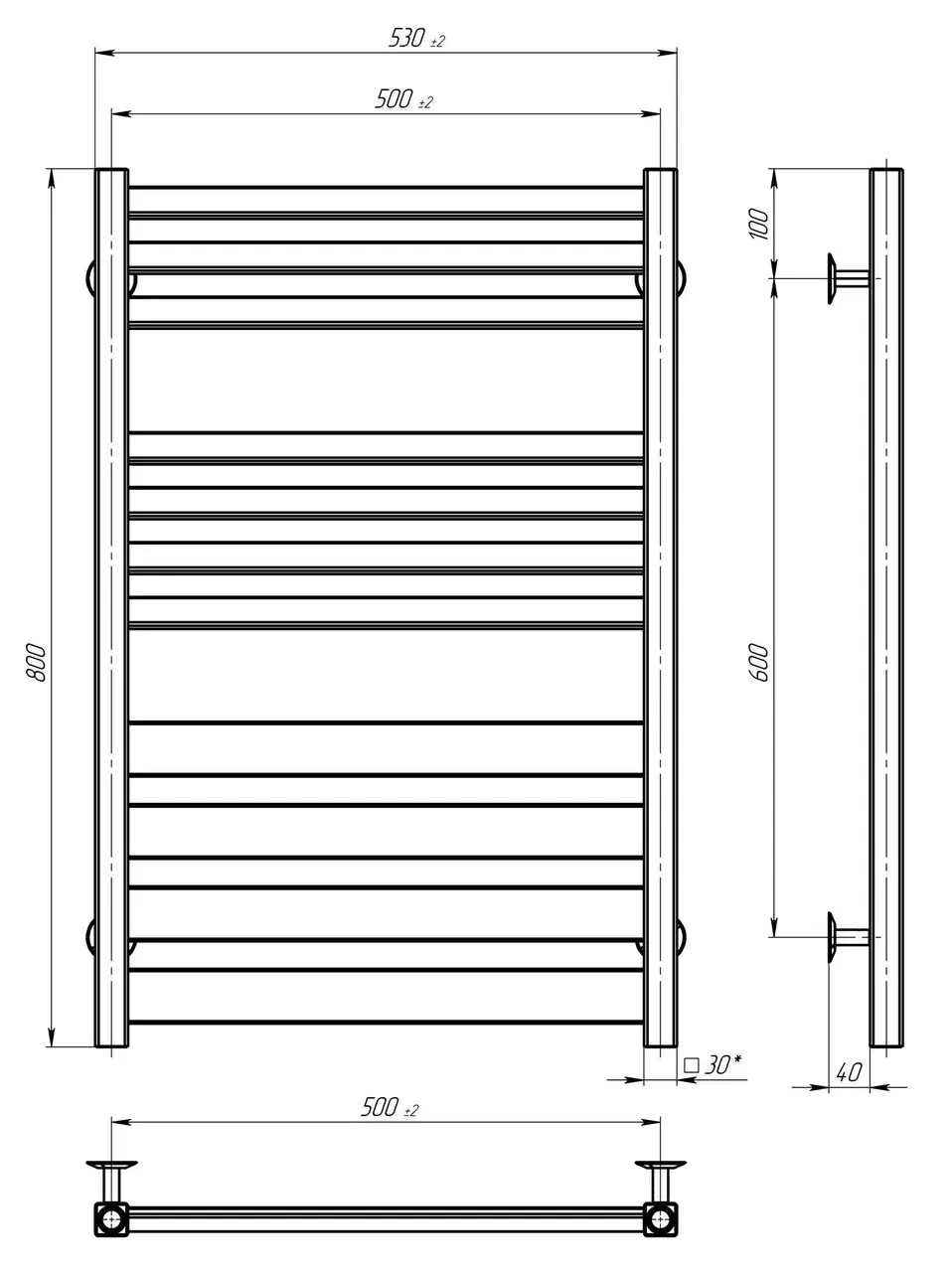 Radiator pentru baie din oțel inoxidabil, dimensiuni 500x800 mm, finisaj cromat. Conceput pentru montaj în baie, asigură încălzirea uniformă și uscarea prosoapelor. Alimentare pe apă (agent termic); este posibilă dotarea suplimentară cu un element electric de încălzire (TEN).