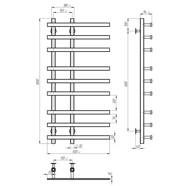 Radiator Baie INOX SIARRA VIVO 150x1000 Crom