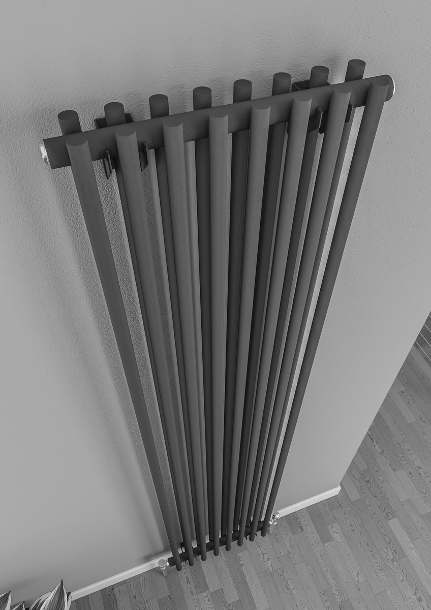 Radiator de baie din oțel, dimensiuni 310x1600 mm, finisaj negru mat. Se montează pe perete și oferă o încălzire eficientă a băii, fiind suficient de înalt pentru a distribui căldura pe verticală și a ajuta la uscarea prosoapelor. Modelul funcționează pe apă (agent termic) și poate fi echipat ulterior cu un TEN electric compatibil pentru a obține un model combinat (apă + electric).