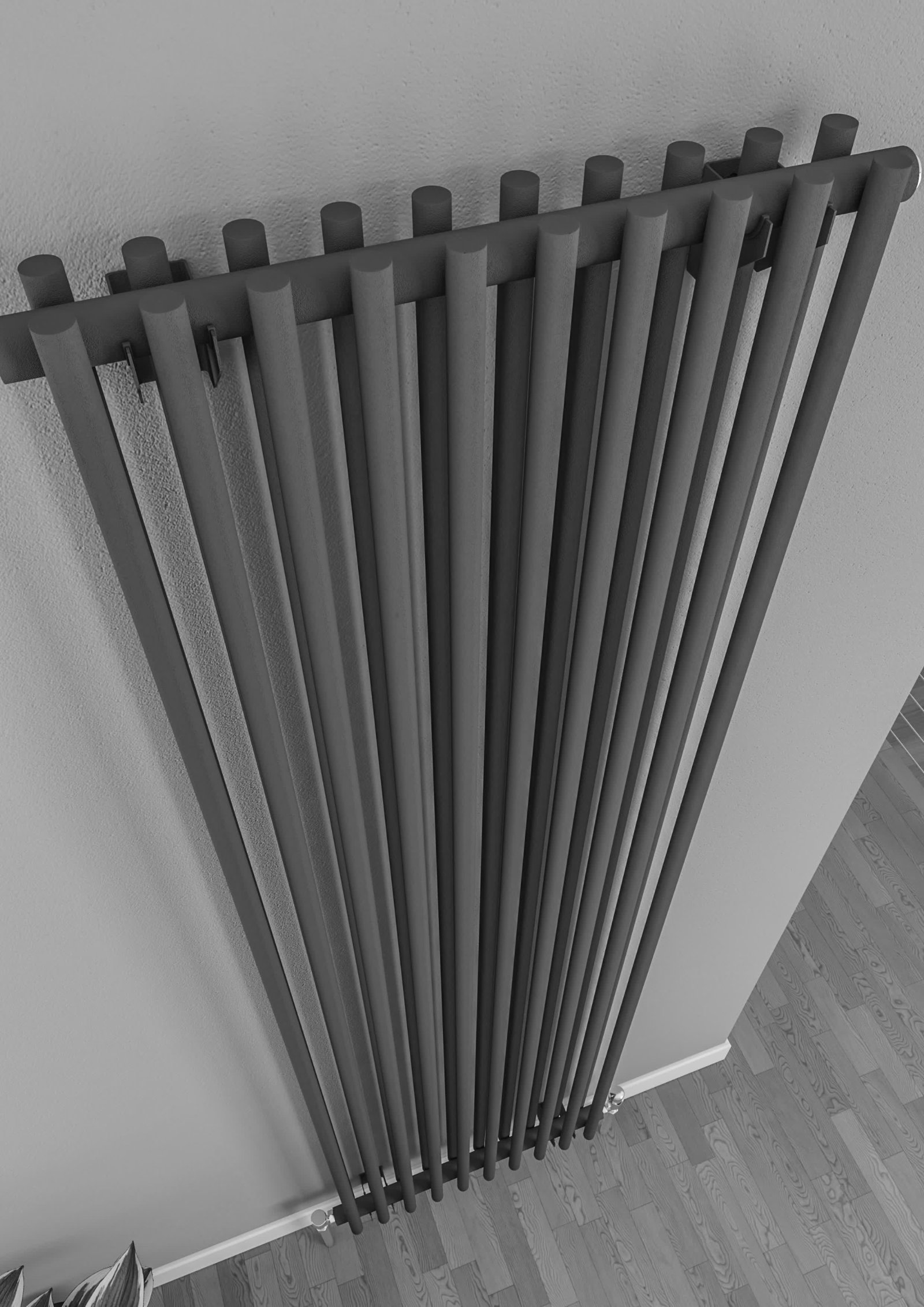 Radiator de baie din oțel, dimensiuni 510x1800 mm, finisaj negru. Se montează pe perete și oferă o încălzire eficientă a băii, fiind suficient de înalt pentru a distribui căldura pe verticală și a ajuta la uscarea prosoapelor. Modelul funcționează pe apă (agent termic) și poate fi echipat ulterior cu un TEN electric compatibil pentru a obține un model combinat (apă + electric).