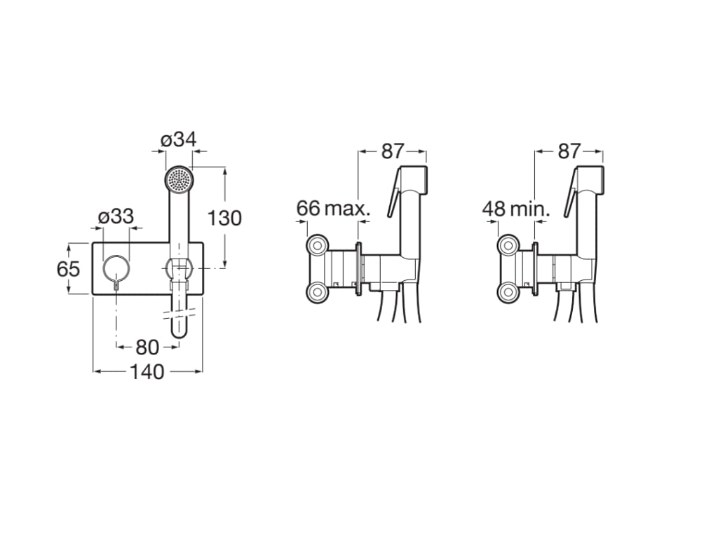 Baterie dus igienic Roca BE-FRESH Square (set complet)