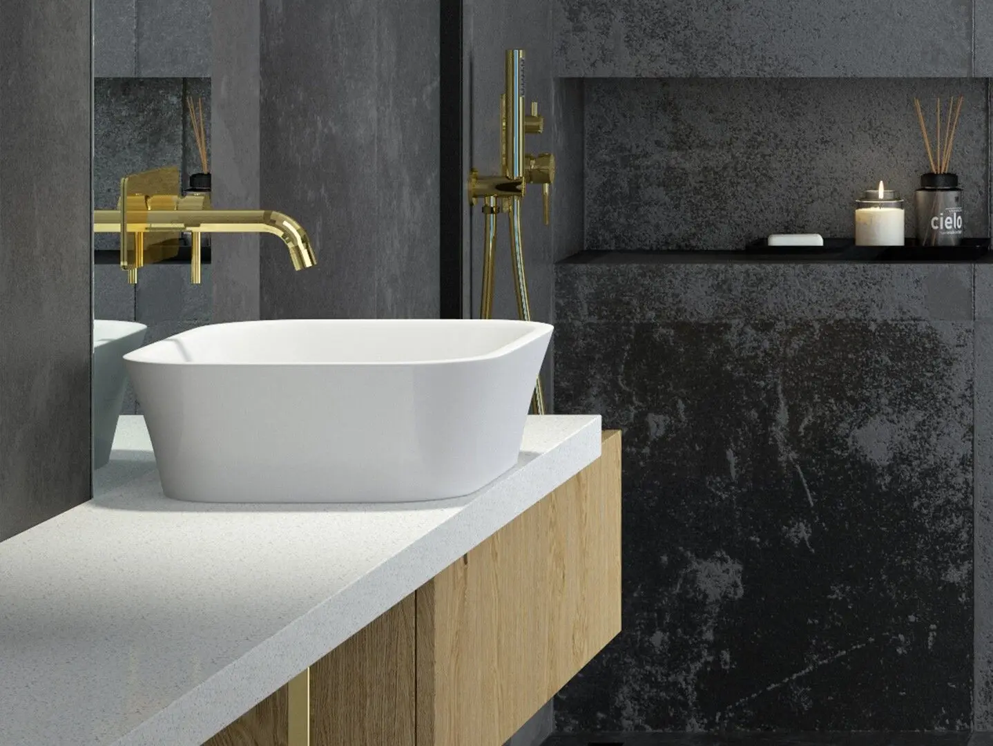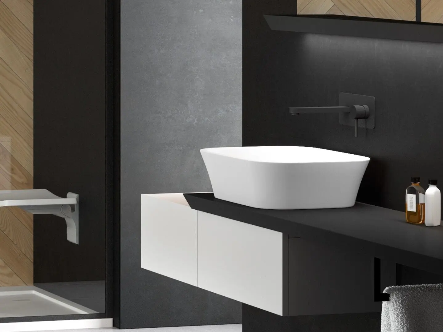 Lavoarul Besco ASSOS pentru montare pe blat este proiectat pentru băi cu design contemporan, oferind o soluție funcțională zonei de spălare. Forma dreptunghiulară și dimensiunile 400x500x150 mm permit integrarea compactă pe mobilier sau blat, facilitând instalarea în spații rezidențiale sau comerciale. Materialul Mineral DuraBe este un compozit mineral cu suprafață netedă, neporoasă, de culoare albă, ceea ce simplifică întreținerea și reduce aderența murdăriei.