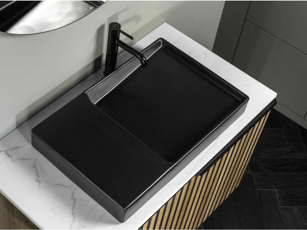 Lavoarul pe blat HORIZON DASH este conceput pentru băi contemporane, oferind o soluție funcțională și clar definită pentru zona de spălare. Forma dreptunghiulară și dimensiunile 600x360x120 mm permit montajul pe mobilier sau blat, asigurând o integrare coerentă în spații rezidențiale sau hoteliere. Ceramica sanitară cu finisaj mat în culoare negru contribuie la un aspect controlat și facilitează întreținerea zilnică în condiții normale de utilizare.