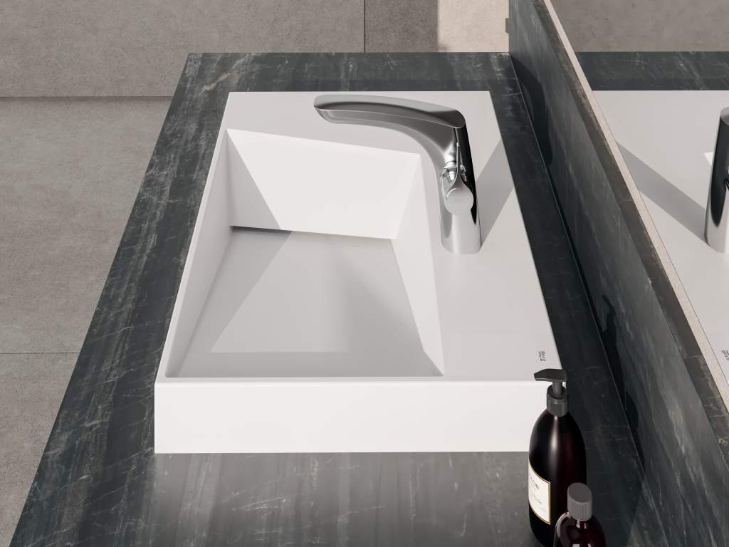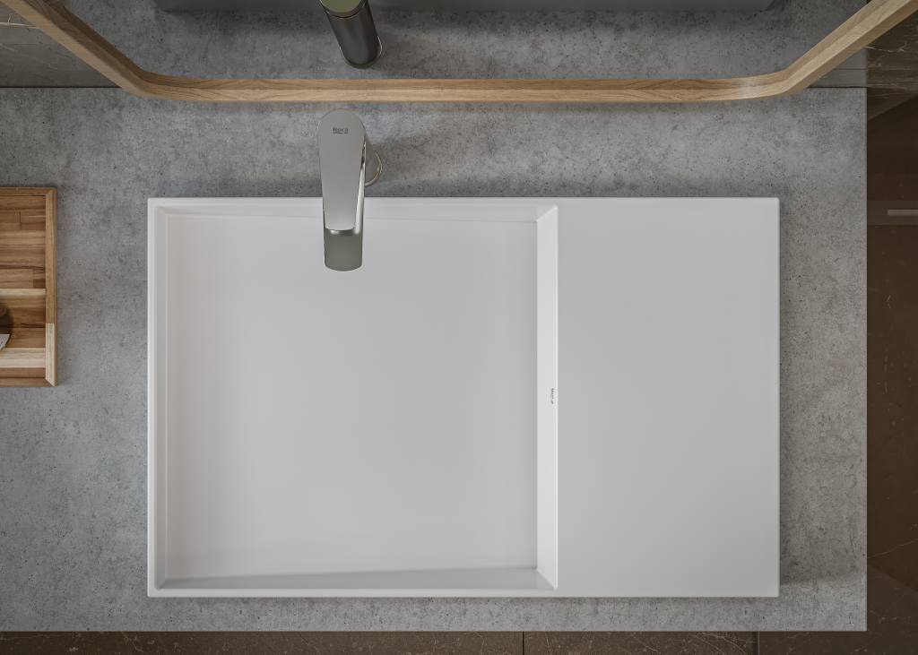 Lavoarul de pe blat Roca Horizon Geometric este proiectat pentru montaj pe suprafața blatului și oferă o soluție estetică și funcțională pentru zona de spălare a băii. Forma dreptunghiulară asimetrică și suprafața albă mată permit o integrare armonioasă în designurile moderne. Produsul este realizat din ceramică sanitară porțelanată, rezistentă la uzură și ușor de întreținut. Configurația nu include preaplin și nu include baterie; ventilul de scurgere se achiziționează separat.