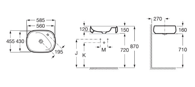 Lavoarul ROCA Beyond este proiectat pentru montare pe blat, oferind un design funcțional și estetic pentru băi moderne. Dimensiunile 585x455x160 mm îl fac potrivit pentru mobilier de dimensiuni medii, iar materialul FINECERAMIC® oferă pereți subțiri și o suprafață netedă, ușor de întreținut. Forma rotunjită și raftul încorporat pe partea dreaptă adaugă funcționalitate și eleganță, iar ventilul universal cu dop ceramic Ø 72 mm este inclus. Lipsa preaplinului accentuează designul minimalist.