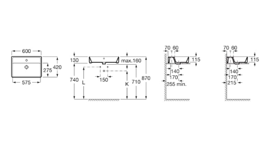 Lavoar pe blat GAP SQUARE, 60x42 cm BPL
