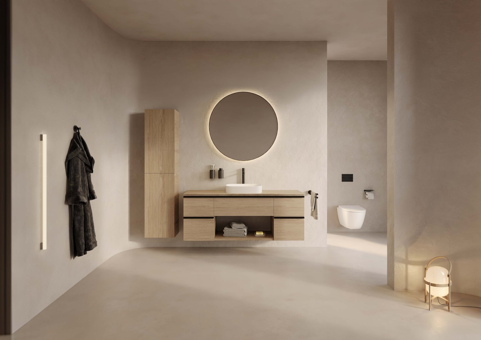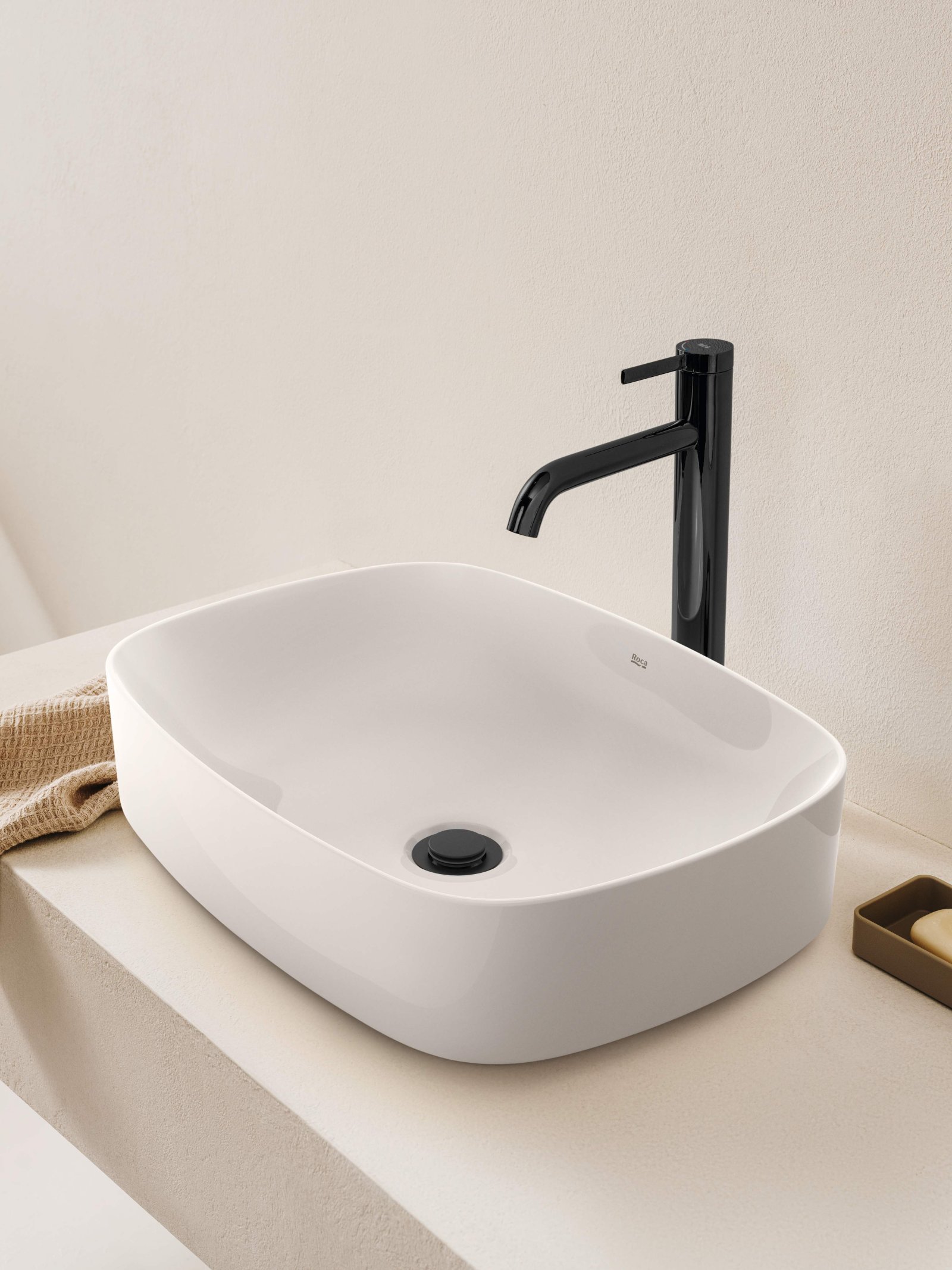 Lavoarul ONA este proiectat pentru montare pe blat și oferă o soluție funcțională pentru zona de spălare din baie, cu un design modern și echilibrat. Produsul este fabricat din materialul FineCeramic® cu suprafață lucioasă, ceea ce facilitează întreținerea și oferă rezistență la uzura zilnică. Forma sa curbată se integrează cu ușurință într-o varietate de amenajări și optimizează spațiul disponibil. Designul fără preaplin și fără orificii pentru baterie oferă opțiuni flexibile de montaj.