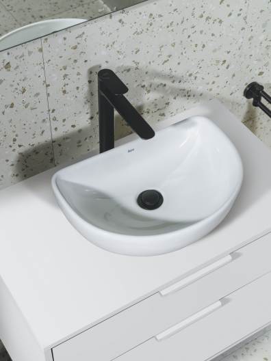 Lavoarul pe blat OPTICA este destinat băilor rezidențiale și comerciale, oferind o soluție funcțională și clar definită pentru zona de spălare. Forma rotundă și dimensiunea 430x430x150 mm permit montajul pe mobilier sau blat, asigurând o integrare echilibrată în spații contemporane. Ceramica sanitară cu suprafață lucioasă facilitează menținerea igienei și curățarea zilnică.
