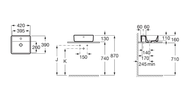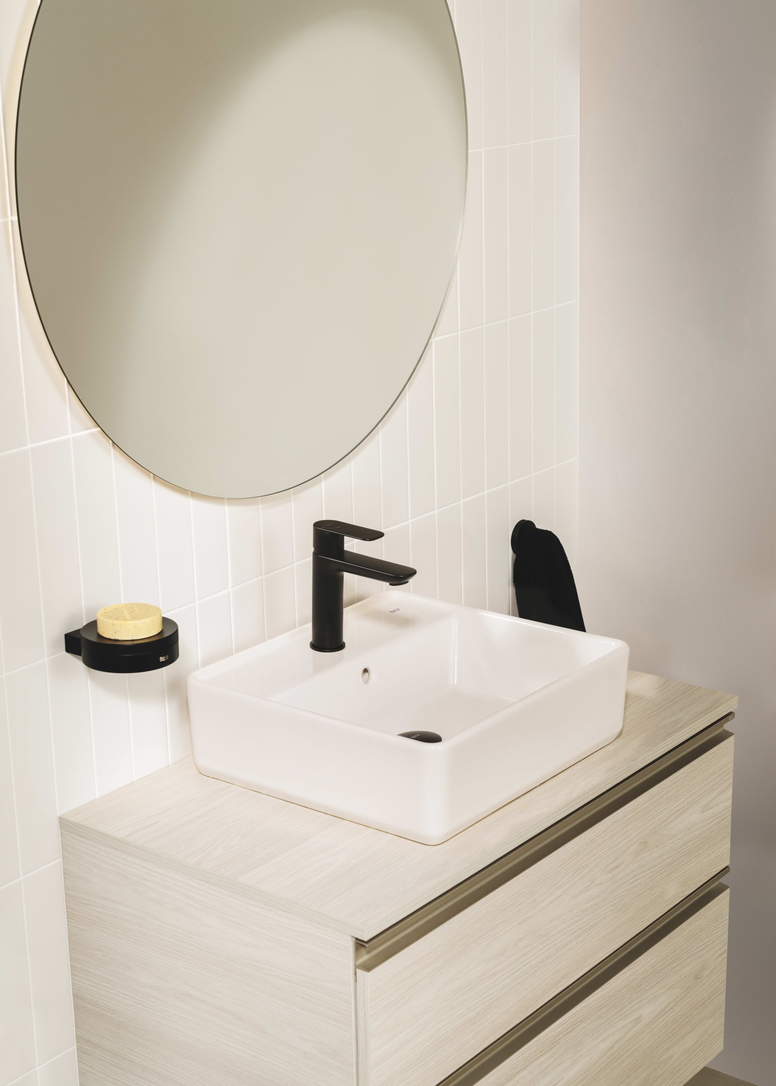 Lavoarul Roca GAP Square este conceput pentru montare pe blat, oferind o soluție estetică și funcțională pentru zona de spălare. Forma pătrată și dimensiunile 420x390x130 mm îl fac potrivit pentru băi de dimensiuni medii, iar suprafață netedă din ceramică cu preaplin integrat facilitează utilizarea și întreținerea. Configurația cu orificiu central pentru baterie permite o selecție flexibilă a acesteia. Materialul din porțelan asigură durabilitate la utilizare zilnică, iar ventilul de scurgere se achiziționează separat.