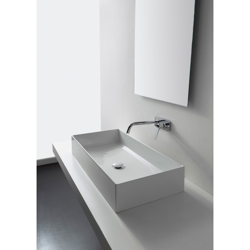 Lavoarul pe blat TEOREMA Square 2.0 de la Scarabeo este destinat băilor rezidențiale și hoteliere, oferind o soluție funcțională și bine structurată pentru zona de spălare. Forma dreptunghiulară cu muchii clar definite și dimensiunile 600x400x150 mm permit montajul pe mobilier sau blat, asigurând o integrare coerentă în amenajări contemporane. Ceramica sanitară cu suprafață lucioasă facilitează menținerea igienei și curățarea zilnică.