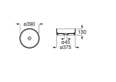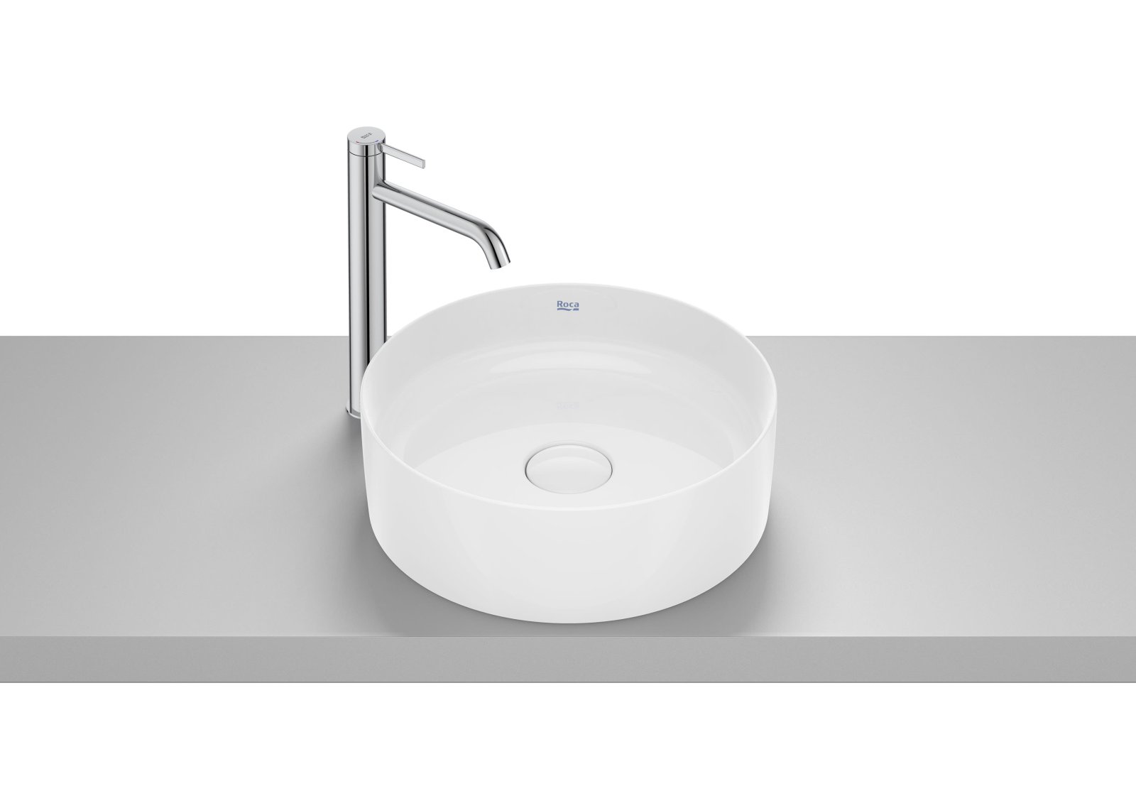 Lavoarul de blat Terra Ø 39 cm este conceput pentru băi moderne unde se dorește un punct de spălare compact și funcțional, integrând forme simple cu eficiență de utilizare. Materialul Fineceramic® oferă o suprafață lucioasă, ușor de curățat și întreținut, iar forma rotundă facilitează gestionarea apei în timpul utilizării. Constructia fără preaplin și fără orificiu pentru baterie permite utilizarea bateriilor înalte sau montate pe perete conform designului dorit.