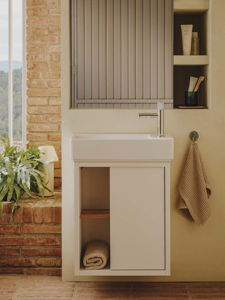 Lavoarul TURA este proiectat pentru montare pe blat și oferă o soluție funcțională pentru zona de spălare în băi rezidențiale sau comerciale. Forma dreptunghiulară cu margini interioare rotunjite optimizează utilizarea spațiului și permite integrarea armonioasă în mobilierul existent. Suprafața ceramică lucioasă facilitează întreținerea zilnică și oferă rezistență la uzura normală. Absența orificiului pentru baterie permite utilizarea bateriilor montate pe perete sau pe blat.