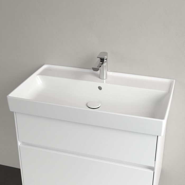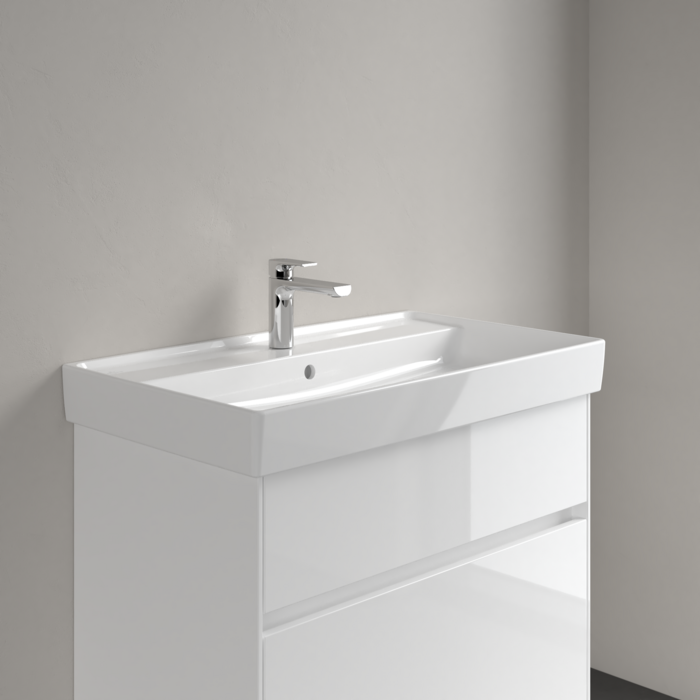 Lavoarul Villeroy & Boch COLLARO este proiectat pentru instalare suspendată sau integrată în mobilierul de baie modern, oferind o soluție funcțională și estetică. Forma dreptunghiulară și dimensiunile 800x465x160 mm îl fac compatibil cu dulapuri și corpuri de 800 mm, iar preaplinul integrat reduce riscul de revărsare. Materialul TitanCeram combină rezistența ceramicii convenționale cu pereți subțiri și o suprafață lucioasă, ușor de întreținut.