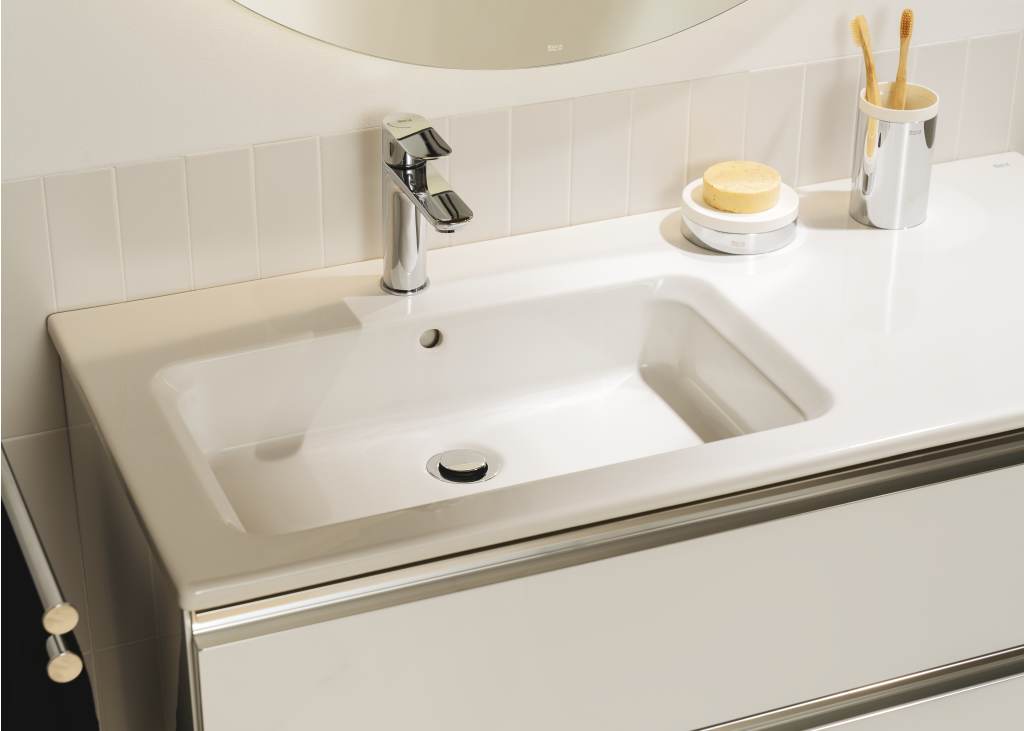Lavoarul sub blat ROCA The Gap Square este conceput pentru montaj sub blatul de baie în spații rezidențiale și comerciale, asigurând o integrare curată în designul interior. Forma dreptunghiulară și dimensiunile compacte 600 x 400 x 160 mm permit o utilizare eficientă a spațiului. Suprafața din porțelan de culoare albă este robustă și rezistentă la utilizarea zilnică.