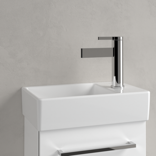 Lavoarul suspendat Villeroy & Boch Avento este conceput pentru băi compacte, oferind o soluție funcțională pentru zona de spălare. Forma dreptunghiulară cu dimensiuni 360x220x110 mm optimizează utilizarea spațiului vertical, integrându-se cu mobilier și baterii moderne. Produsul este realizat din ceramică sanitară cu suprafață lucioasă, de culoare albă, rezistentă la utilizare umedă frecventă.