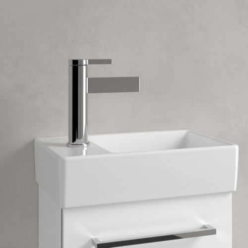 Lavoarul suspendat Villeroy & Boch Avento este conceput pentru băi compacte, oferind o soluție funcțională pentru zona de spălare. Forma dreptunghiulară cu dimensiuni 360x220x110 mm optimizează utilizarea spațiului vertical, integrându-se cu mobilier și baterii moderne. Produsul este realizat din ceramică sanitară cu suprafață lucioasă, de culoare albă, rezistentă la utilizare umedă frecventă.