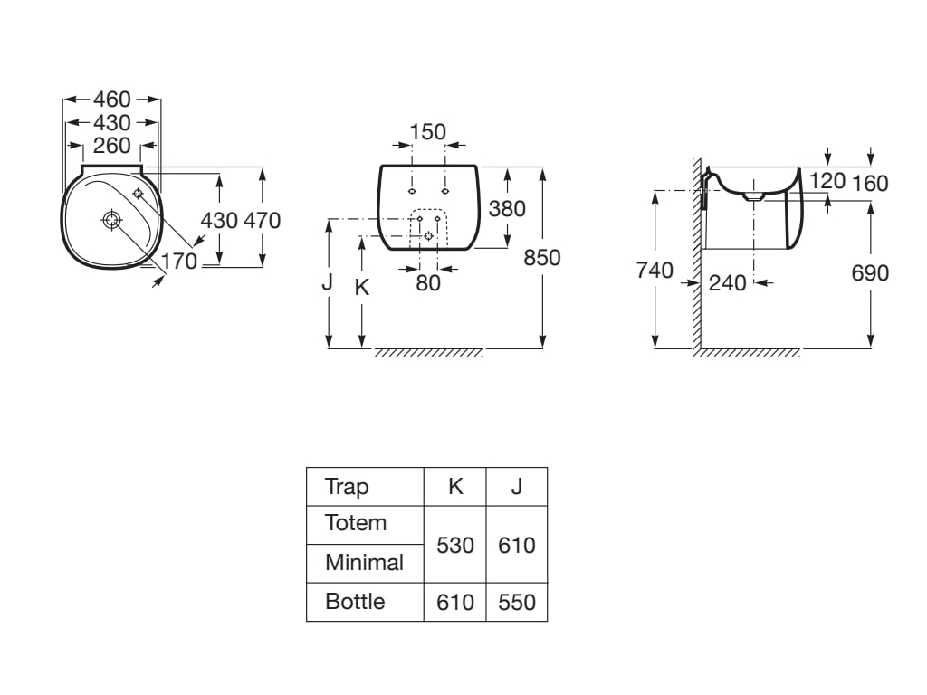 Compatibilitate și condiții de montaj: montaj suspendat pe perete; compatibil cu baterii pentru un singur orificiu pe partea dreaptă; se recomandă achiziționarea separată a sifonului adecvat.