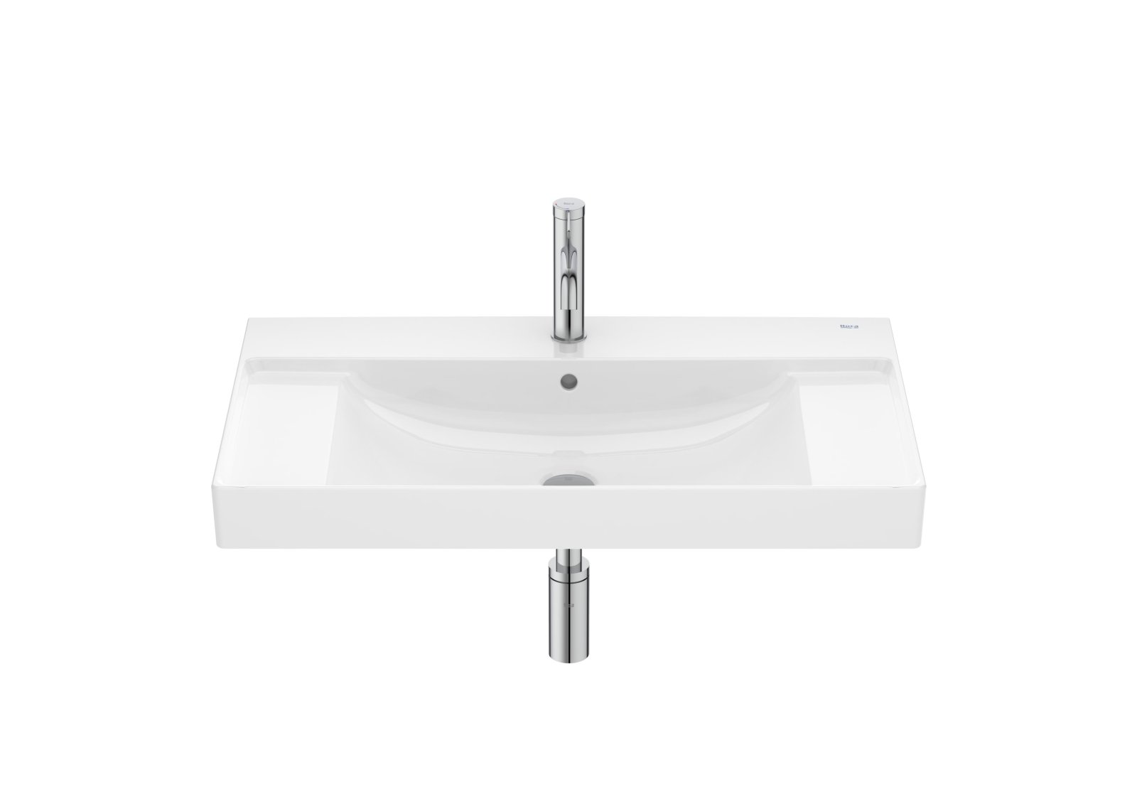 Lavoarul suspendat Ona din colecția Roca este conceput pentru băi rezidențiale unde se caută un echilibru între funcționalitate și estetică simplă. Cu dimensiunile de 800x460x160 mm și bolul plasat central, oferă o zonă de spălare practică cu o capacitate de 7,2 l și adâncimea adecvată pentru utilizarea de zi cu zi. Ceramică porțelanată FINECERAMIC® cu finisaj lucios facilitează întreținerea și asigură un aspect curat și ordonat. Preaplinul integrat și polițele laterale adaugă funcționalitate, iar setul de fixare este inclus pentru montajul suspendat.