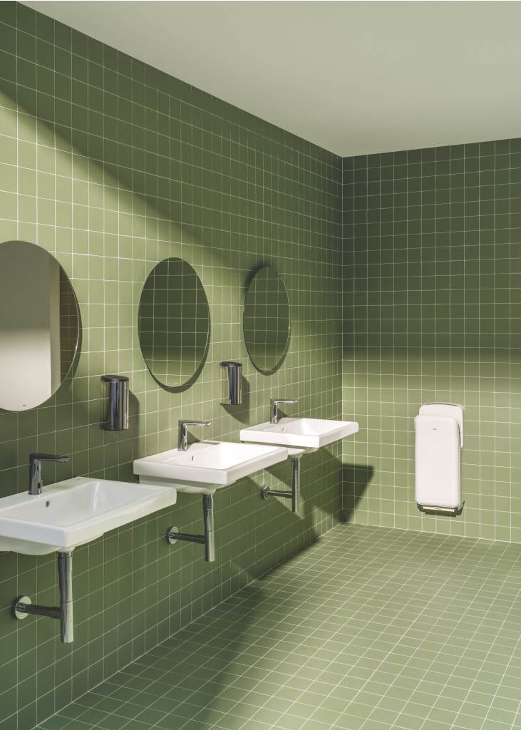 Compatibilitate și condiții de montaj: instalare suspendată pe perete cu setul de fixare inclus; compatibil cu baterii pentru un singur orificiu central; ventilul și sifonul se achiziționează separat.