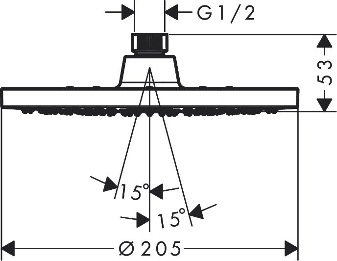 Compatibilitate / condiţii de montaj: destinat montării pe plafon sau perete prin braţ; compatibil cu sistemele EcoSmart; racord G 1/2, presiune de la 1 bar.