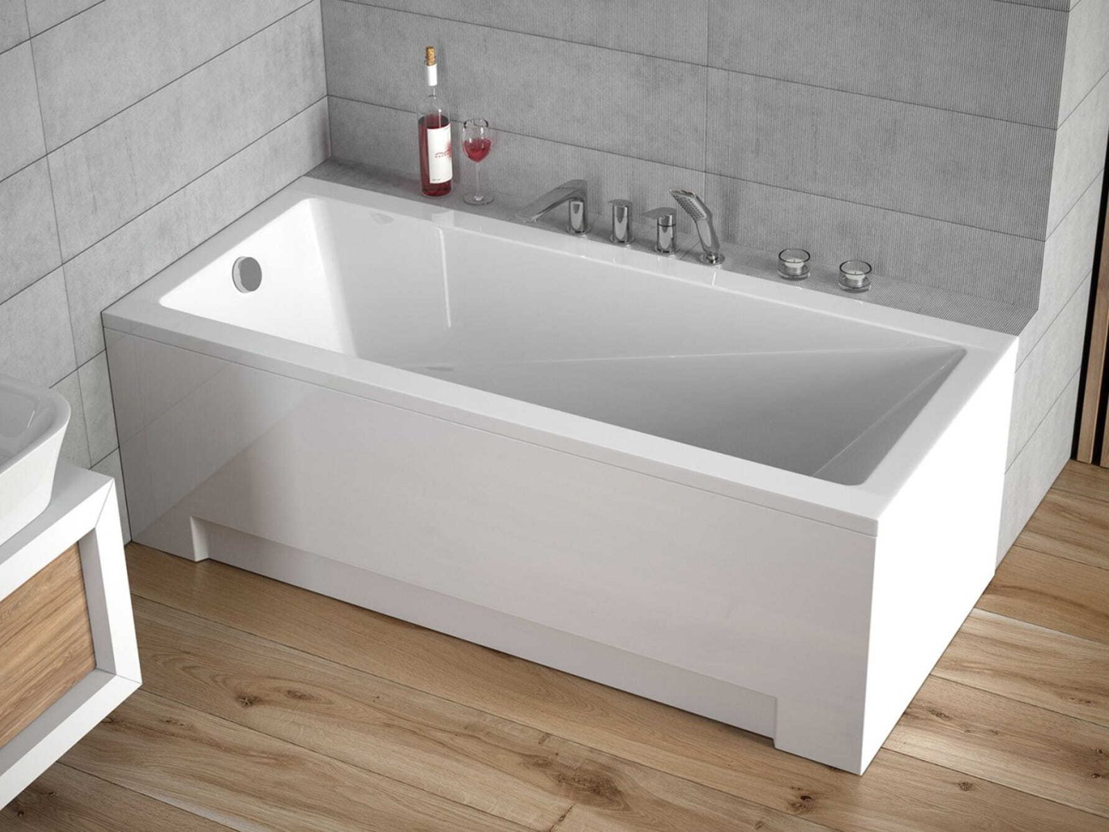 Panoul pentru cada Besco UNI 180 este destinat finisării unei cazi dreptunghiulare cu lungimea de 180 cm. Produsul este realizat din acril sanitar cu suprafaţă lucioasă. Panoul cuprinde panoul frontal şi panoul lateral, montaj universal (faţă/lateral). Acrilul asigură o bună izolaţie termică şi o suprafaţă uşor de restaurat în caz de zgârieturi minore.