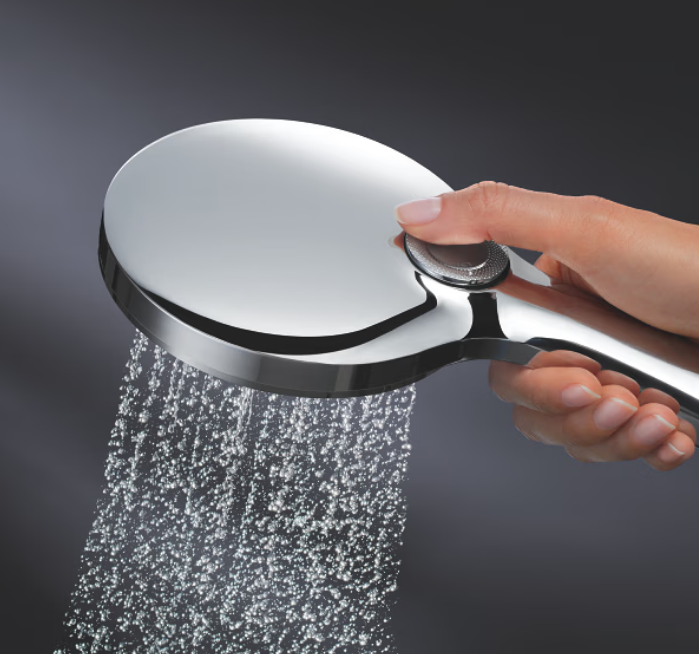 Para de duș GROHE Rainshower SmartActive este destinată obținerii unei experiențe confortabile la duș cu posibilitatea selectării tipului de jet. Diametrul de 130 mm oferă zonă constantă de acoperire, iar cele trei moduri permit ajustarea fluxului de la blând la masaj. Comutarea se realizează prin buton integrat, asigurând operare precisă și comodă.