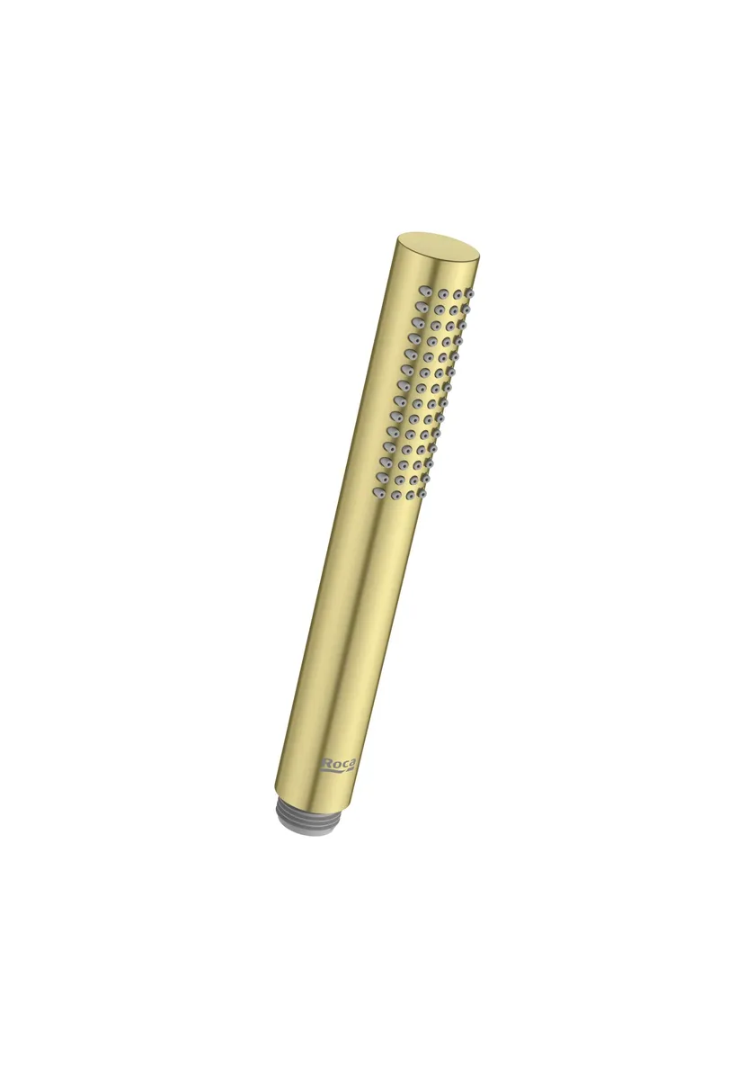 Para de duș manual Roca Stella Round Stick este proiectat pentru conectare la sistemele standard de duș. Forma compactă și rotundă, cu diametrul Ø 25 mm, oferă un jet precis și direcționat. Materialul este plastic, cu finisaj mat auriu (brushed brass), rezistent la zgârieturi și coroziune.