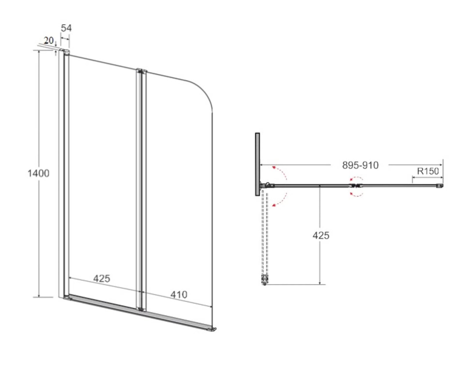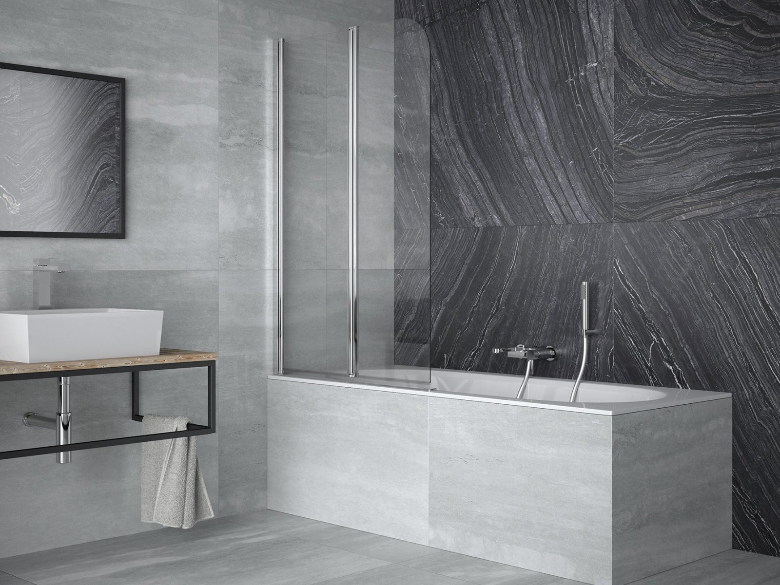 Paravan de cadă cu două piese, conceput pentru protecția băii împotriva stropilor în timpul dușului, transformând cada într-o cabină funcțională. Panourile sunt din sticlă securizată 5 mm, ceea ce oferă durabilitate și siguranță la utilizare. Profilul din aluminiu are finisaj cromat, oferind un aspect neutru și elegant. Modelul permite montaj universal — dreapta sau stânga — și reglaje la instalare, pentru a compensa eventualele denivelări ale pereților și a asigura o fixare stabilă pe cadă.