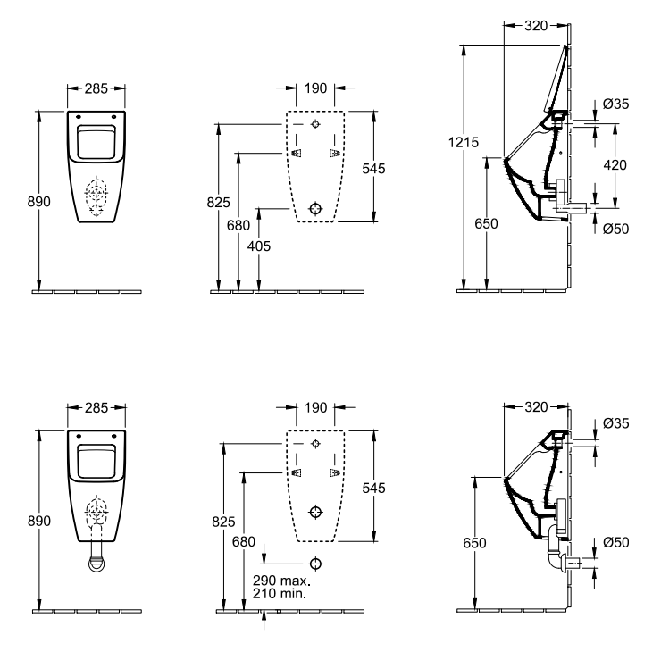 Acest pisoar nu este livrat ca set complet. Pentru instalare este necesară achiziția produselor din secțiunea «Se cumpără cu produsul», de mai jos.
