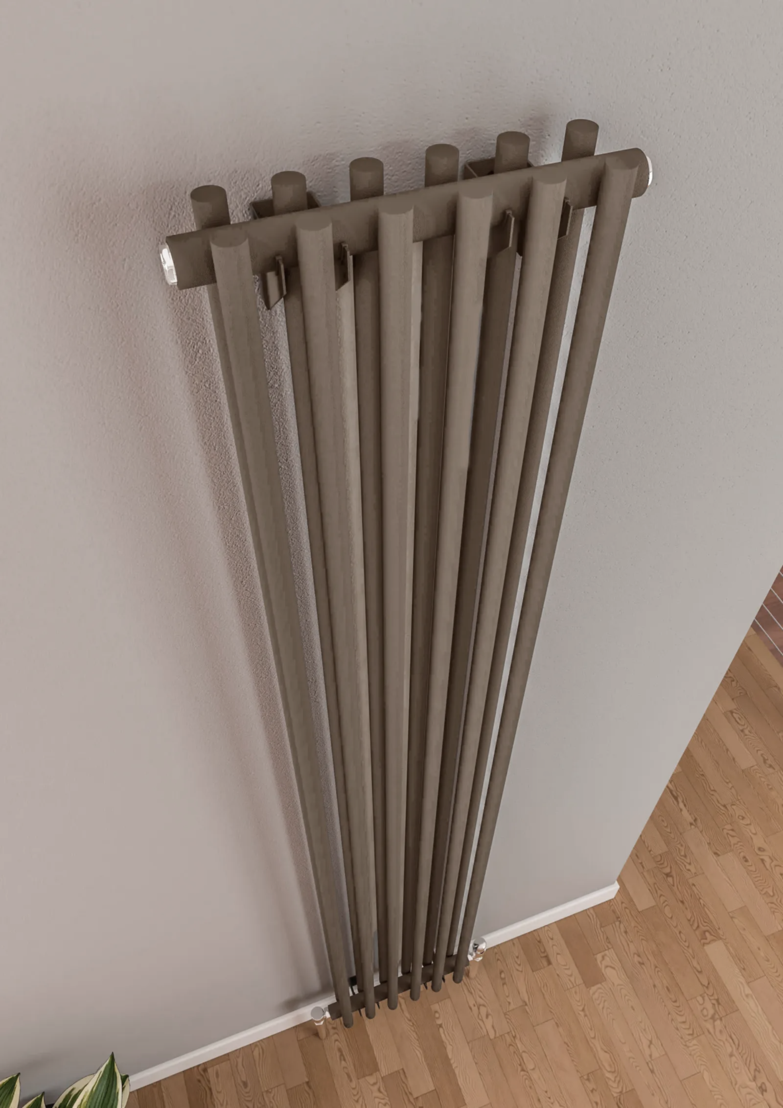 Radiator de baie din oțel, dimensiuni 310x1800 mm, finisaj capucino. Se montează pe perete și oferă o încălzire eficientă a băii, fiind suficient de înalt pentru a distribui căldura pe verticală și a ajuta la uscarea prosoapelor. Modelul funcționează pe apă (agent termic) și poate fi echipat ulterior cu un TEN electric compatibil pentru a obține un model combinat (apă + electric).