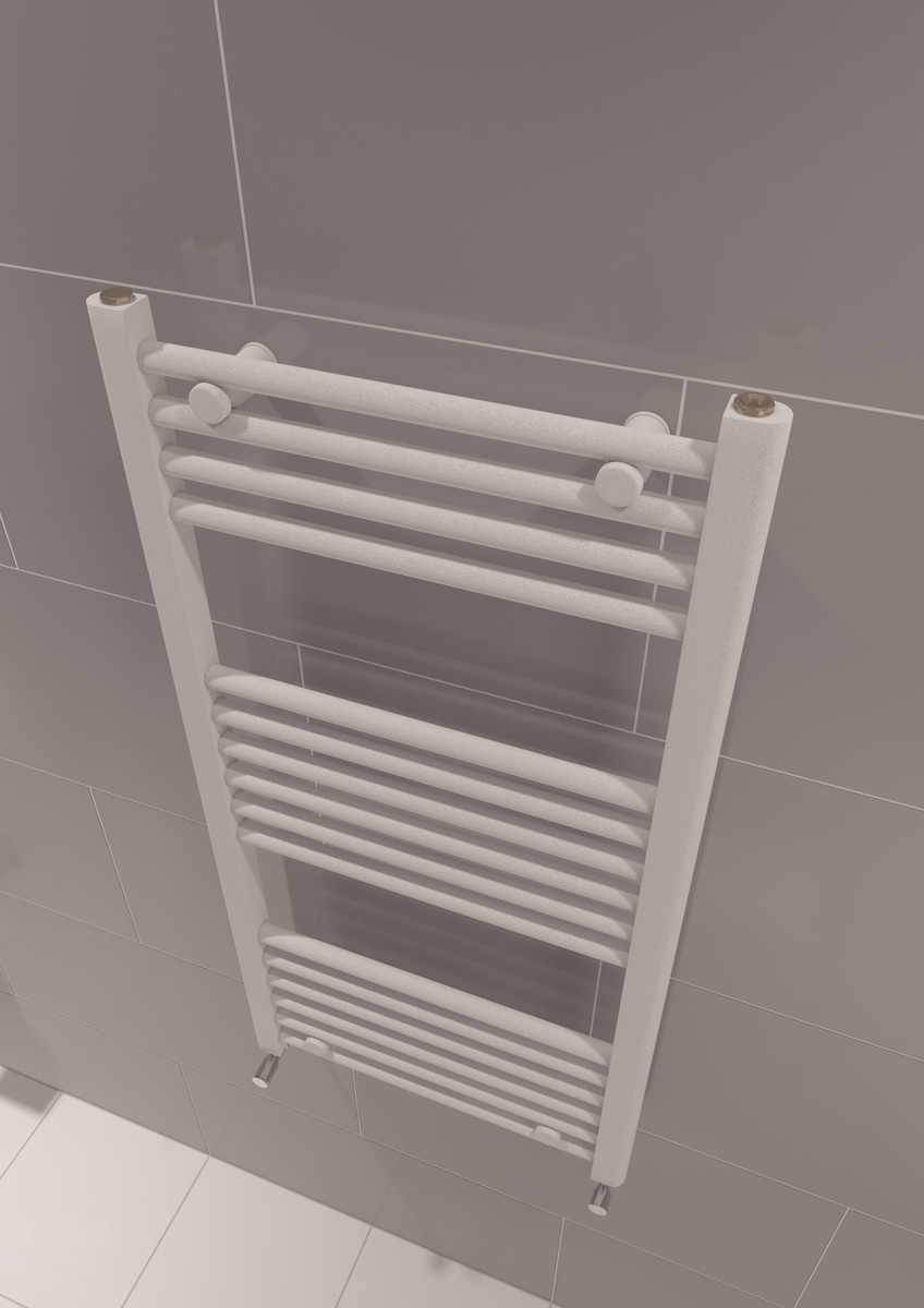 Radiator de baie din oțel, dimensiuni 600x1000 mm, finisaj alb. Se montează pe perete și oferă o încălzire eficientă a băii, fiind suficient de înalt pentru a distribui căldura pe verticală și a ajuta la uscarea prosoapelor. Modelul funcționează pe apă (agent termic) și poate fi echipat ulterior cu un TEN electric compatibil pentru a obține un model combinat (apă + electric).